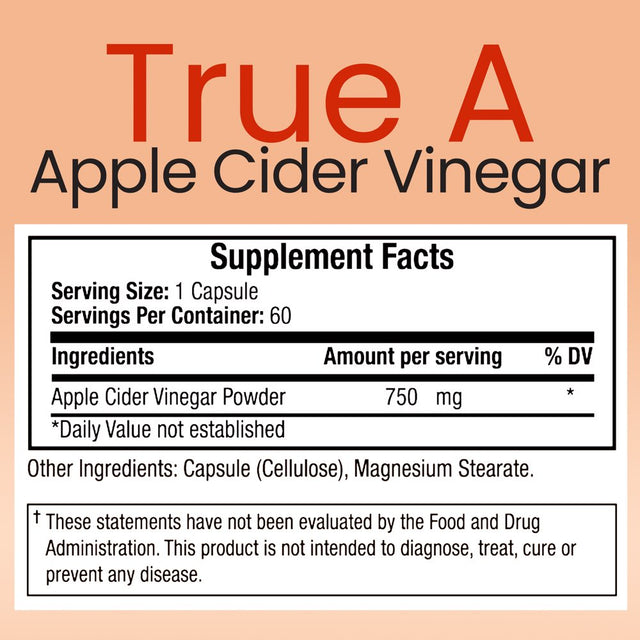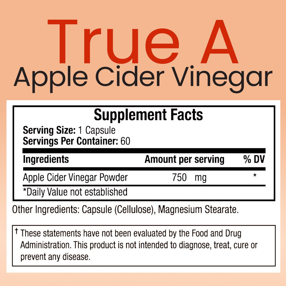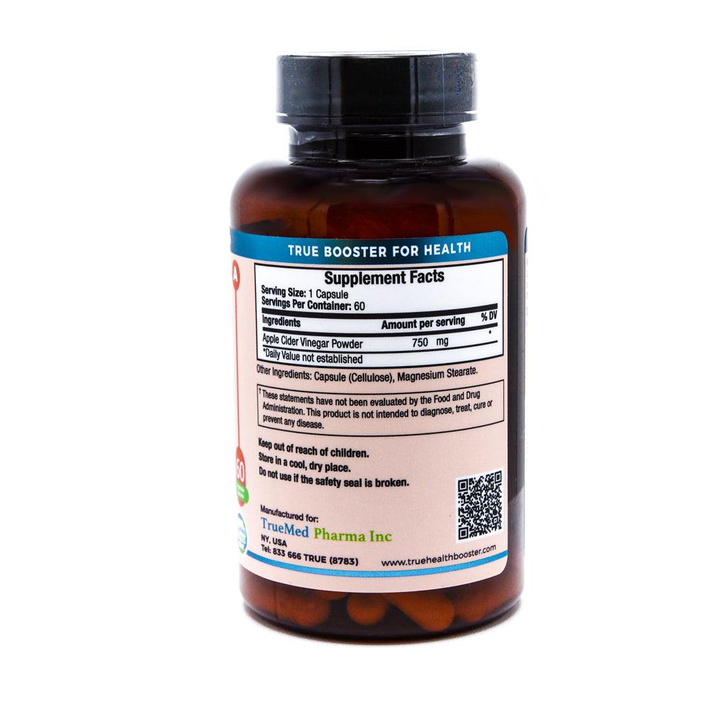 Natural Detoxification: TrueMed Apple Cider Vinegar supplement is specialized for healthy digestion, healthy and glowing skin. It may also help with natural detoxification of the body, and healthy weight management without any hassle. Provide Daily Nutrition: Apple Cider Vinegar supplement is made with 750 mg of Apple Cider Vinegar Powder. TrueMed is also high in healthy substances such as vitamins, proteins, enzymes, minerals, and amino acids, easily allowing TrueMed Apple Cider Vinegar to provide daily nutrition in one bottle. Natural Ingredients: TrueMed Apple Cider Vinegar contains completely natural and organic ingredients. These dietary supplements contain no added color, preservative, or artificial flavors.