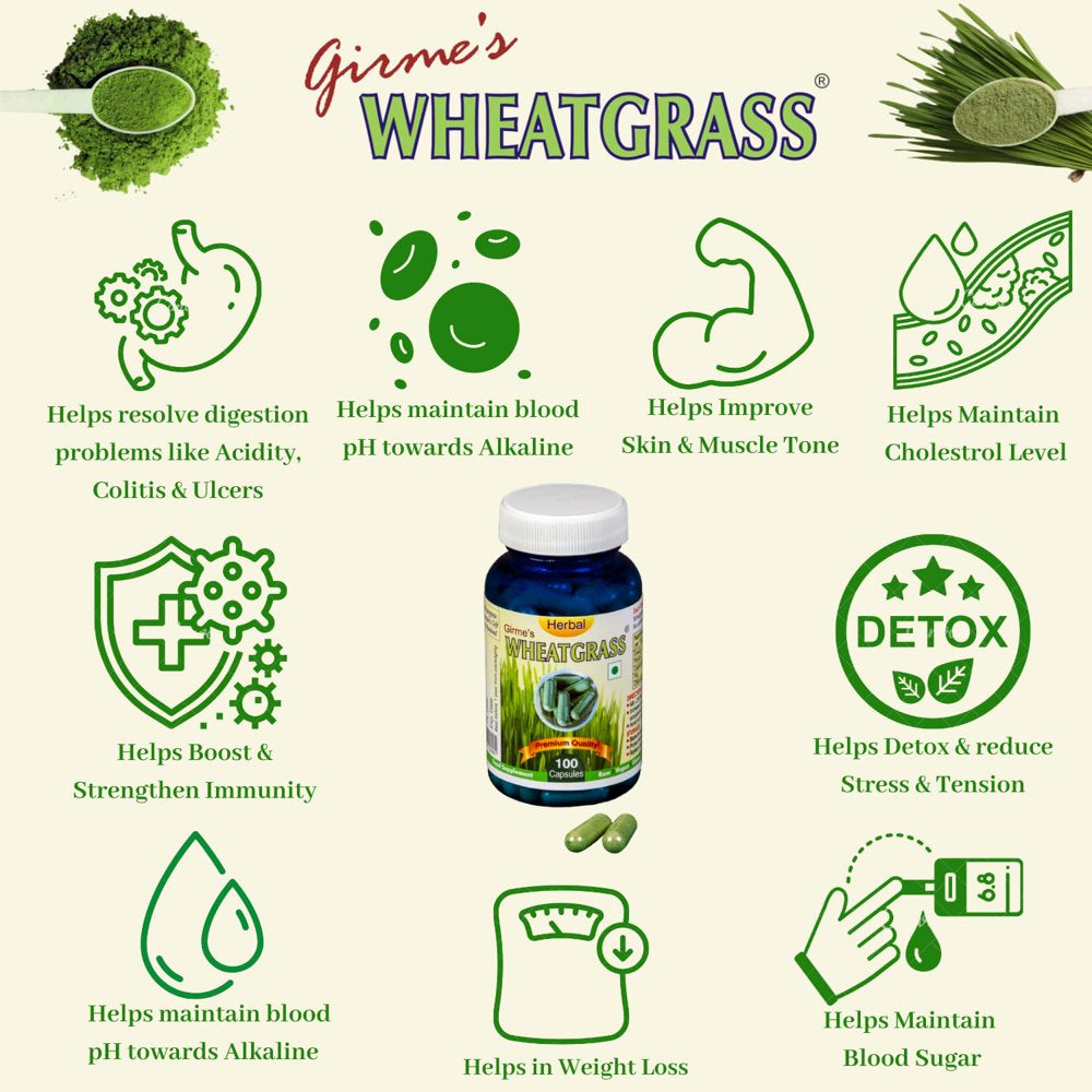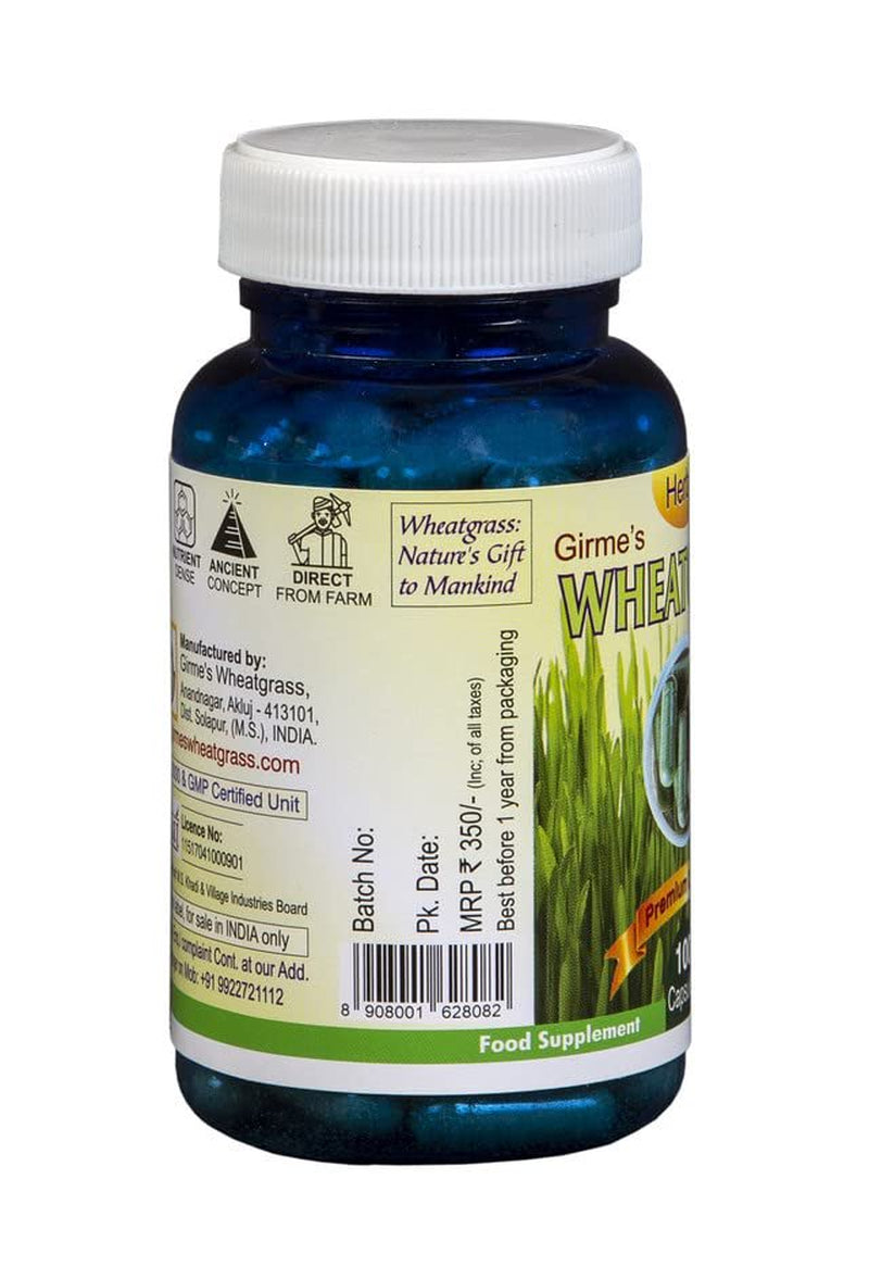 Girme'S Wheatgrass 100 Capsules - (Pack of 2) | India Organic - Jaivik Bharat Certified | Natural Health Supplement | Immunity Booster, Detox | Export Quality