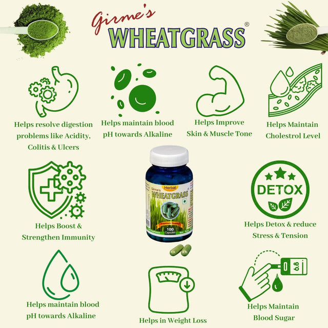 Girme'S Wheatgrass 100 Capsules - (Pack of 2) | India Organic - Jaivik Bharat Certified | Natural Health Supplement | Immunity Booster, Detox | Export Quality is backordered and will ship as soon as it is back in stock.