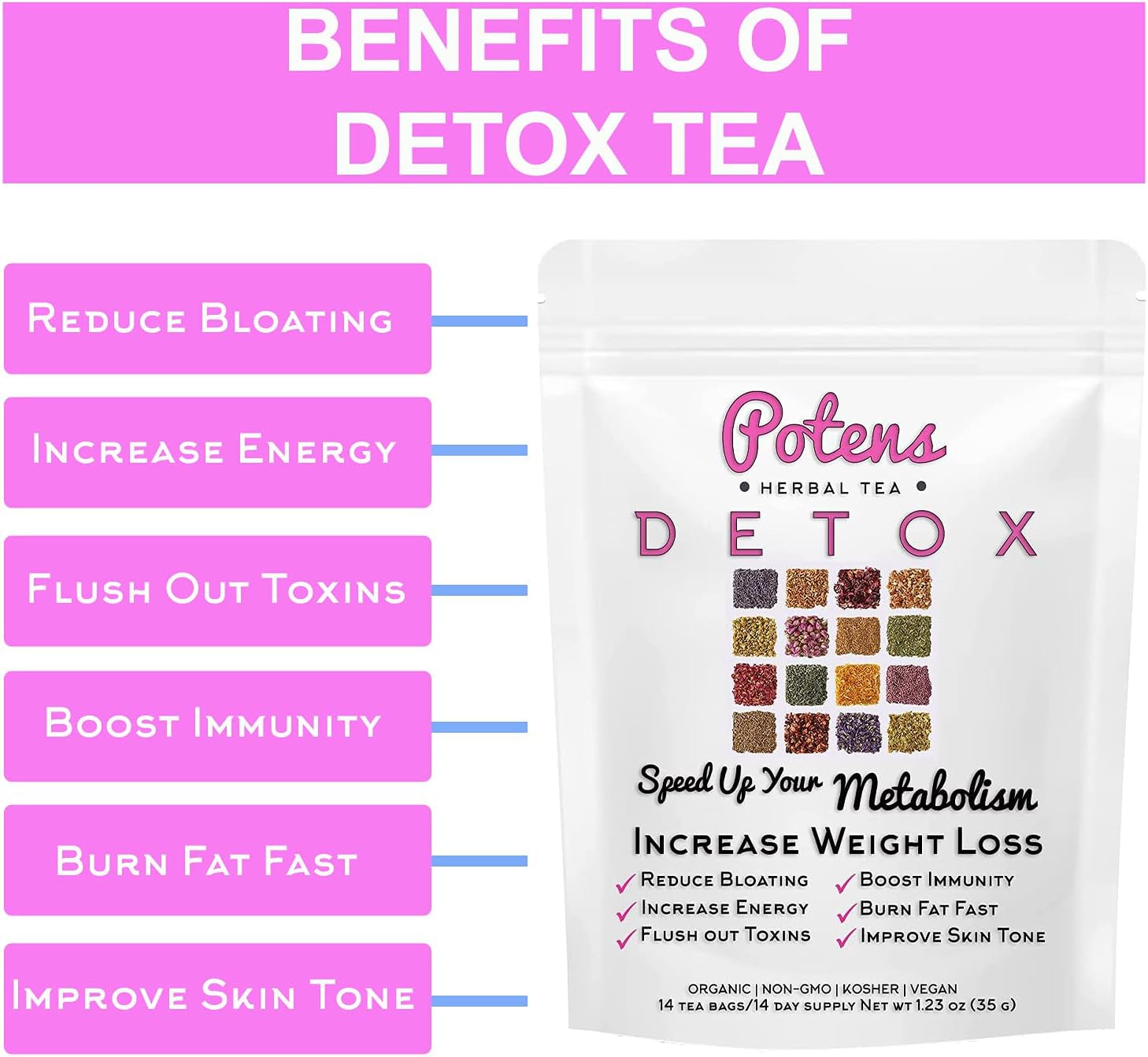 - LIVER, KIDNEY, SKIN CLEANSE: The liver is the biggest detoxifier in our body, responsible for the breakdown and elimination of various harmful substances from the body. The herbs in POTENS DETOX HERBAL TEA support and stimulate the liver and kidneys to block and flush out toxins and rejuvenate your body inside and out.