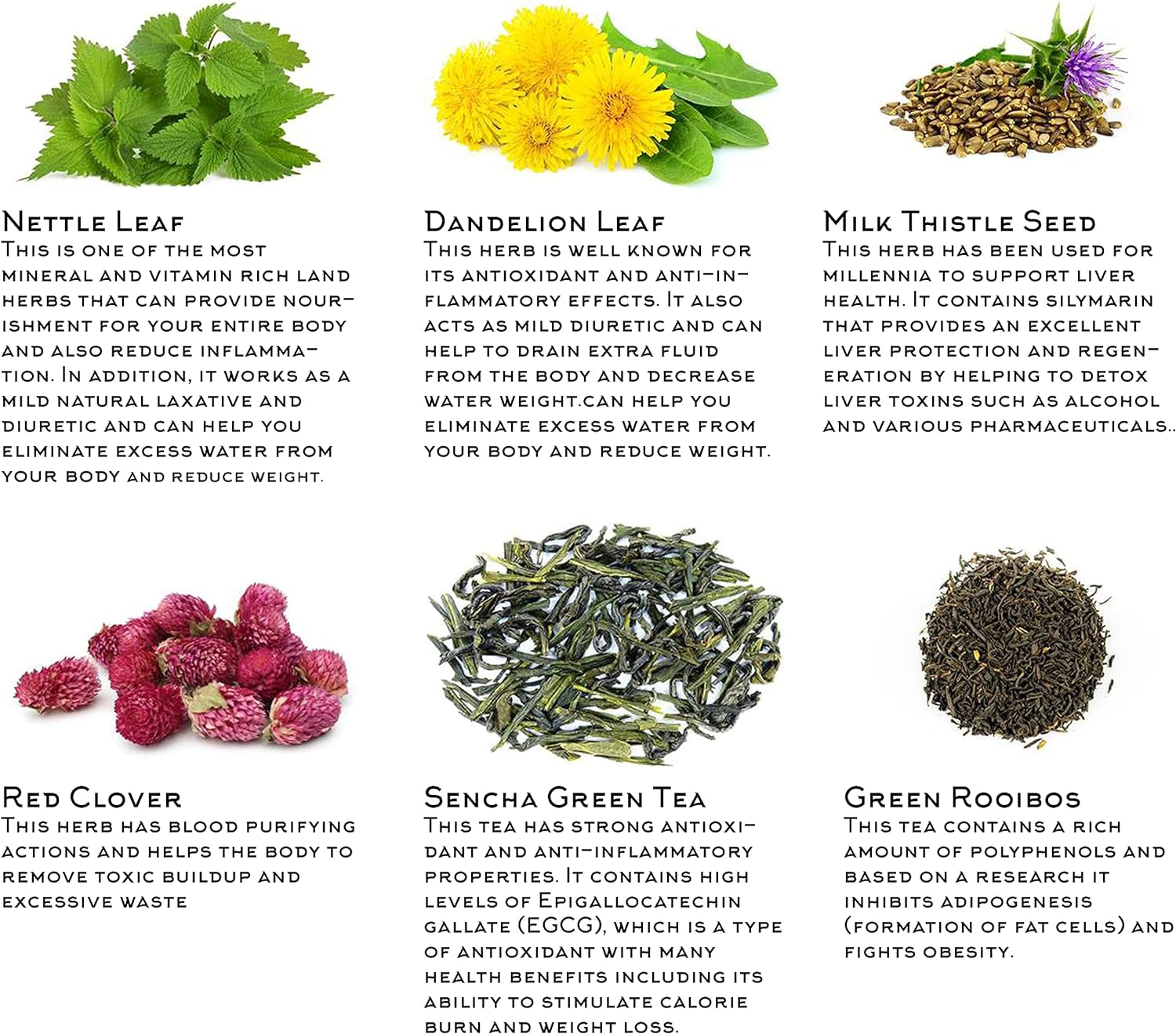 - A STEP CLOSER TO YOUR HEALTHY LIFESTYLE: Adding this herbal tea to your daily routine is a great step to a healthier you. Each herb in this tea has various properties that will turn on your detoxifying enzymes and help your body to rinse toxins from your system to support your cleanse.