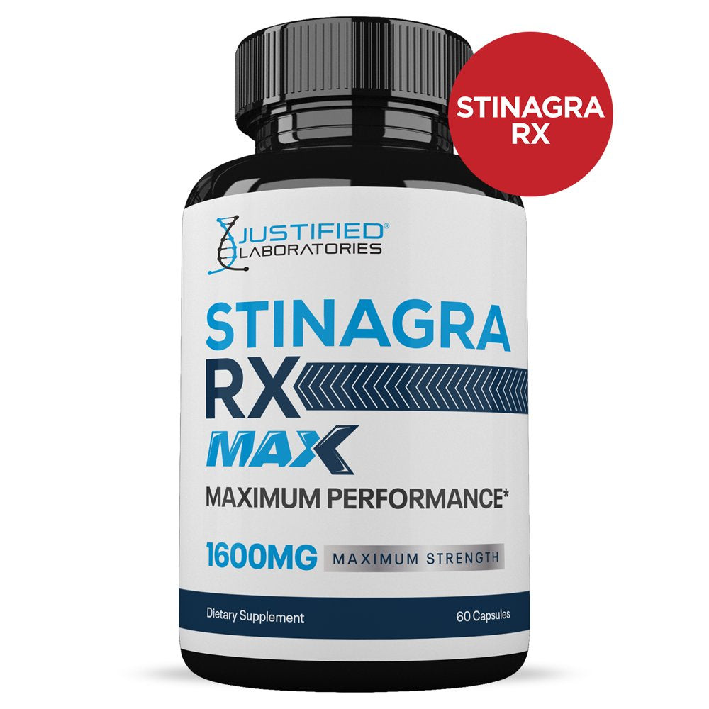 Justified Laboratories Stinagra RX Max is the ultimate men's health supplement - formulated to help you be at your best every day. Packed with a potent blend of ingredients, our supplement delivers 1600mg per serving, making it stronger than our standard 1484mg formula. Whether you're looking to enhance your workouts or add to your overall health, our supplement is the perfect choice for you. Our proprietary blend is non-GMO, gluten free, free from artificial colors and flavors, and is designed with your performance in mind.