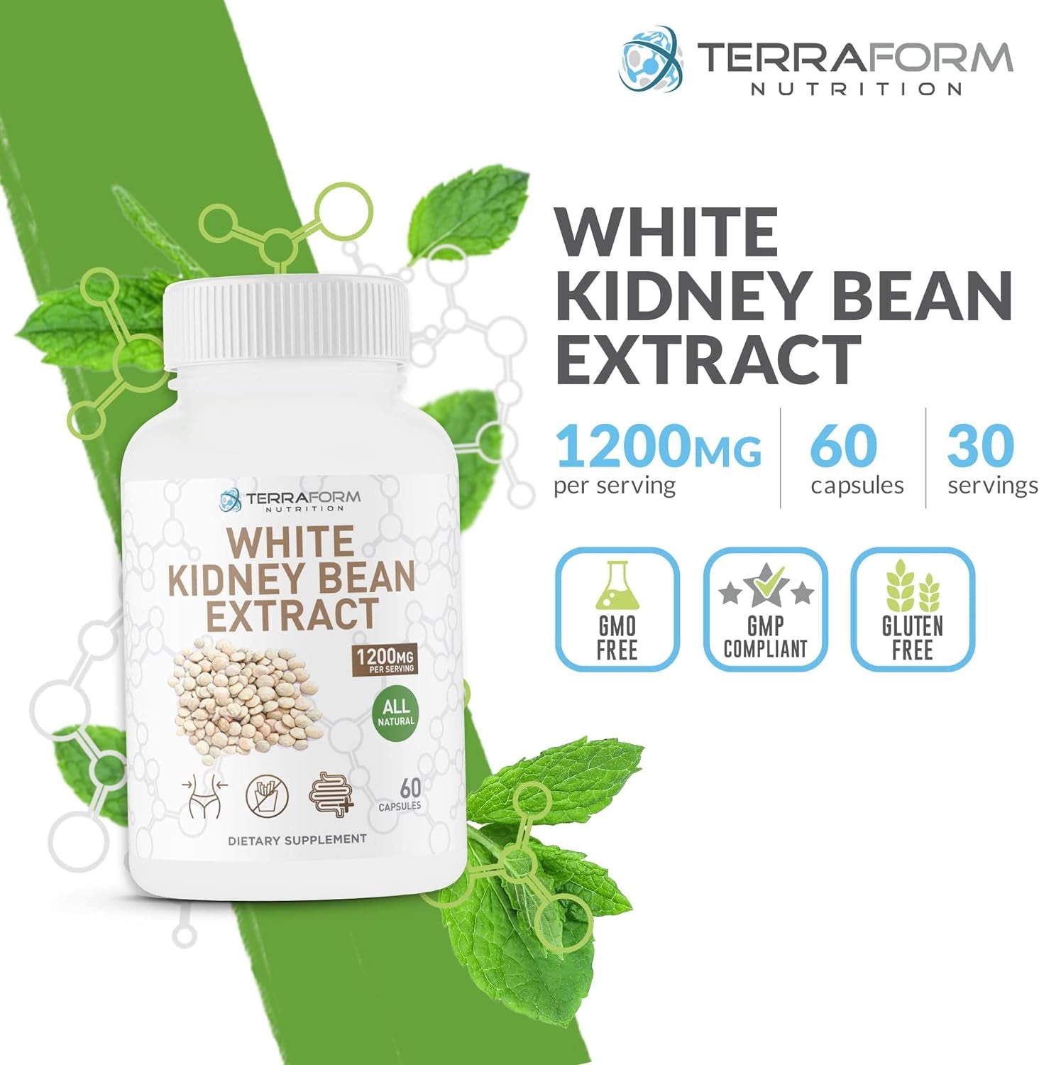 100% Pure White Kidney Bean Extract – All-Natural Carb Blocker 1200Mg Serving– Optimized for Weight Loss & Fat Prevention for Women & Men – Made in USA