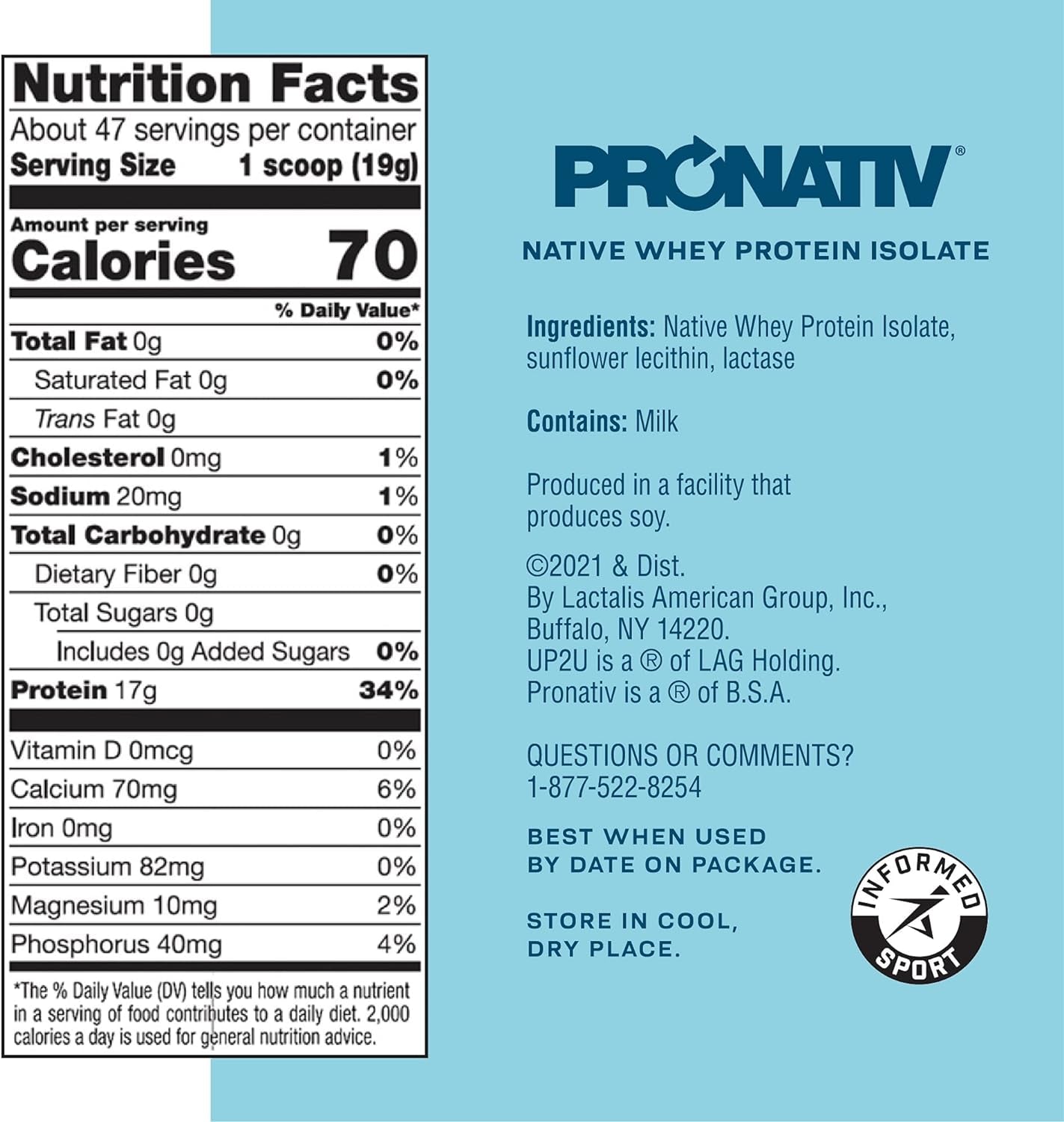 100% Whey Native Protein Isolate Powder 2 Lb 47 Servings (Unflavored) | Made from Farm Fresh Milk, Low Carb Lifestyle, No Preservatives, Build and Maintain Lean Muscle with Just One Scoop