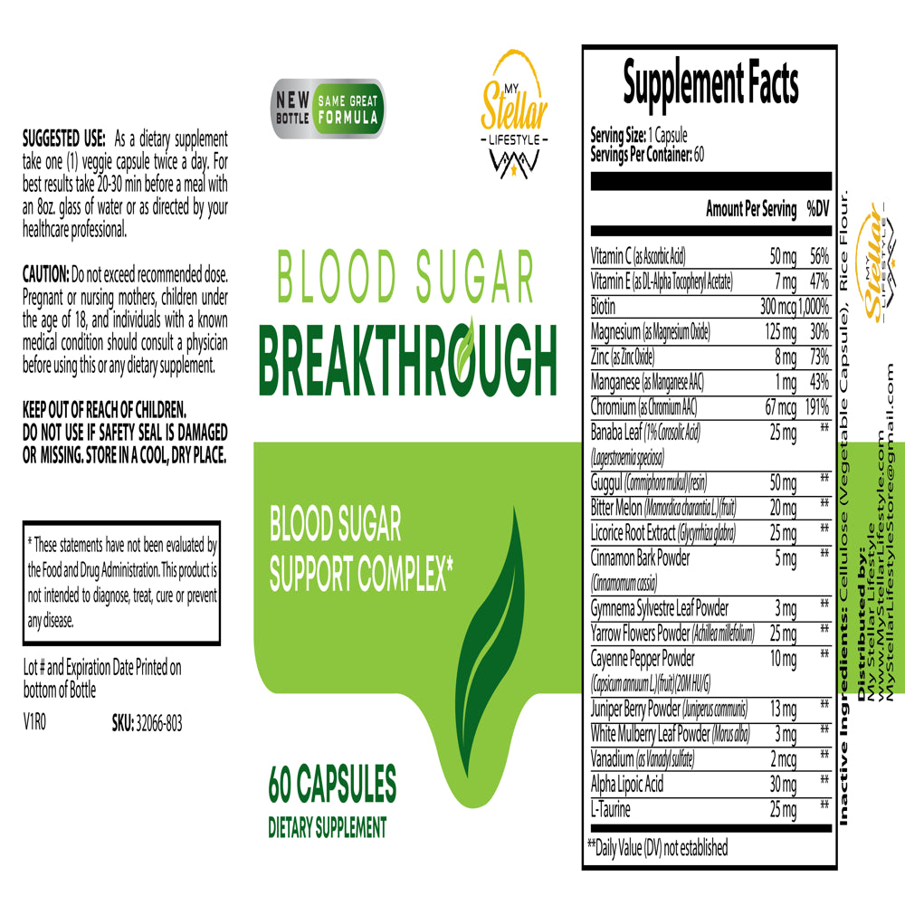 12 Pack Blood Sugar Breakthrough, blood sugar support-60 Capsules x12