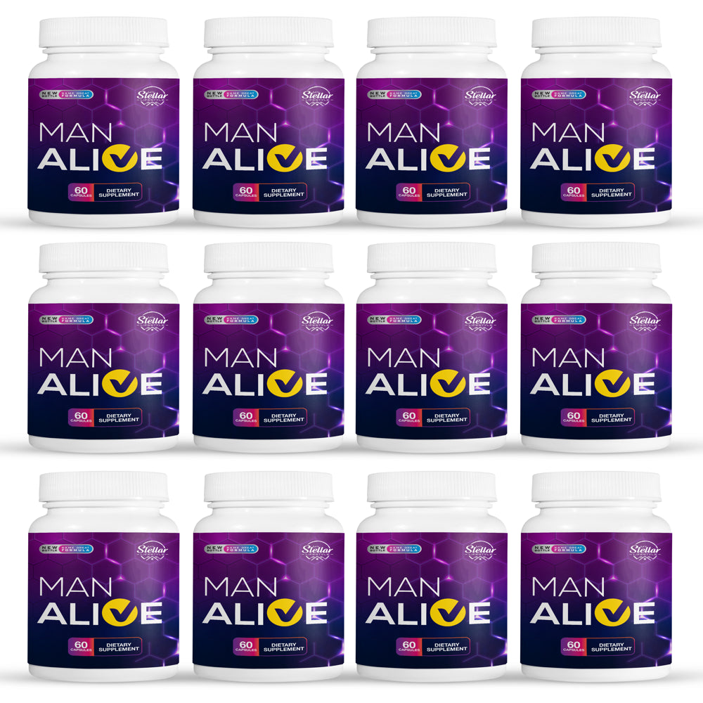 12 Pack Man Alive, stamina libido vitality pills for men-60 Capsules x12