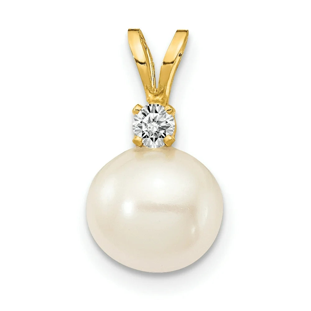 14K 7Mm FW Cultured Pearl VS Diamond Pendant