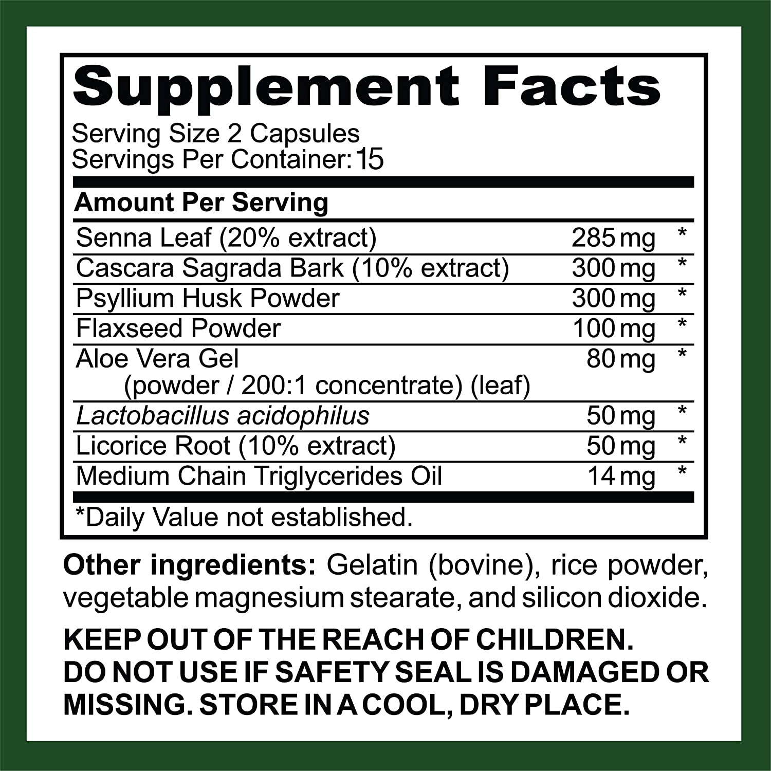 - 30 ACTIVE COLON CLEANSER CAPSULES: Our U.S.-made proprietary, physician-formulated blend contains Senna Leaf, Cascara Sagrada, Psyllium Husk Powder, Flaxseed Powder, Aloe Vera, Lactobacillus, Licorice Root, Bovine, Rice Powder, vegetable Magnesium.