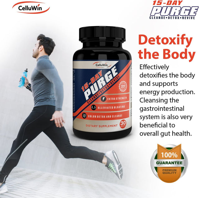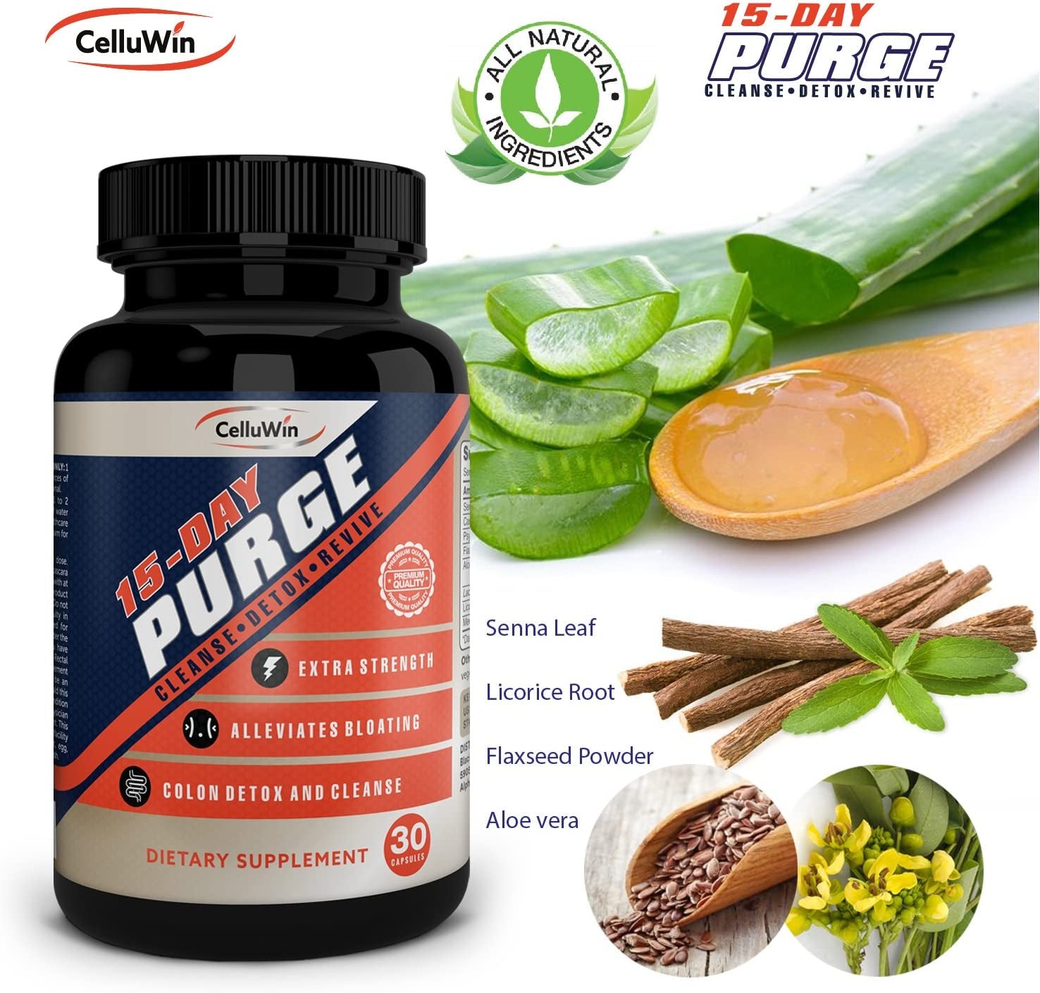 15-Day Purge Rapid Colon Cleanse, Natural Detox Pills for Bloating, Constipation and Gas, Supports More Energy and Good Weight Management, Body Cleanse Detox for Women and Men, 30 Capsules - Celluwin