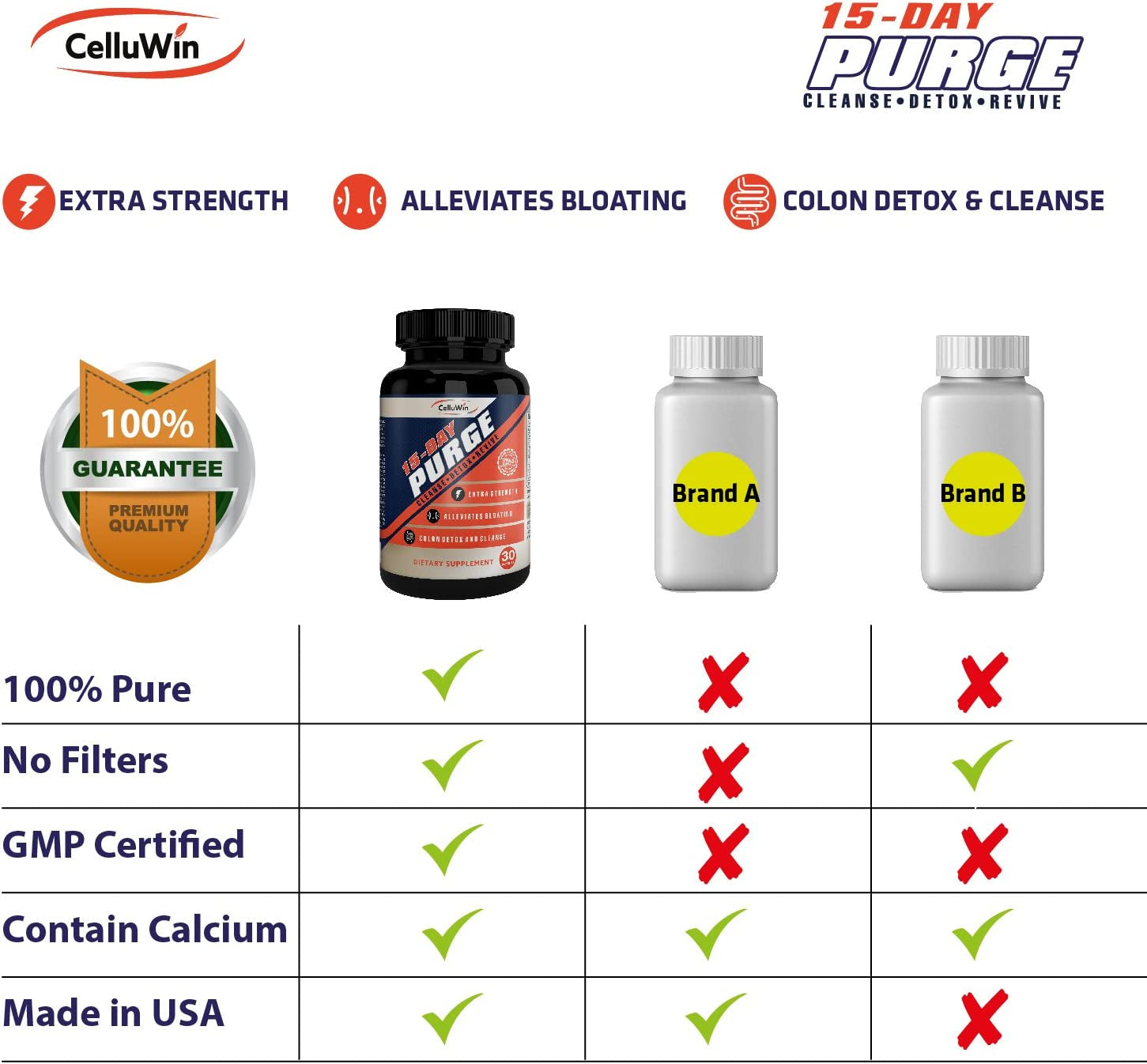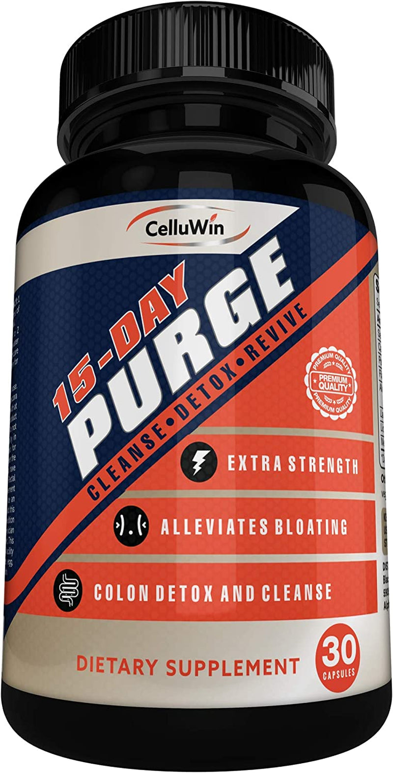 15-Day Purge Rapid Colon Cleanse, Natural Detox Pills for Bloating, Constipation and Gas, Supports More Energy and Good Weight Management, Body Cleanse Detox for Women and Men, 30 Capsules - Celluwin is backordered and will ship as soon as it is back in stock.