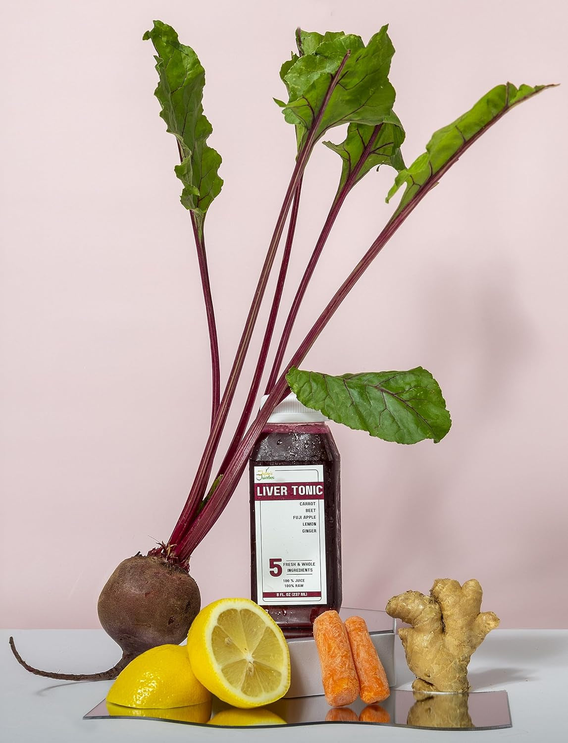 - FLAVORS ON FLAVORS: 8 Flavors That Will Blow Your Taste Buds Away! (1) Lemonade Stand: Green Apple & Lemon (2) Rise & Shine: Carrot, Orange, Lemon & Ginger (3) Beauty Juice: Pineapple, Celery, Cucumber, Cilantro & Mint (4) Greenhouse: Celery, Cucumber, Parsley, Kale, Granny Smith Apple, Lemon & Ginger (5) Liver Tonic: Carrot, Beet, Fuji Apple, Lemon & Ginger (6) Hydrator: Watermelon & Lime (7) Apple A Day: Fuji Apple, Gala Apple, Granny Smith Apple & Ginger (8) Sweet Red: Red Grapes
