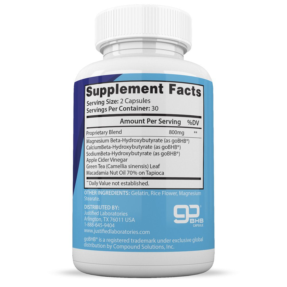 Justified Laboratories Keto Pills includes goBHB and has a potency of 800mg.