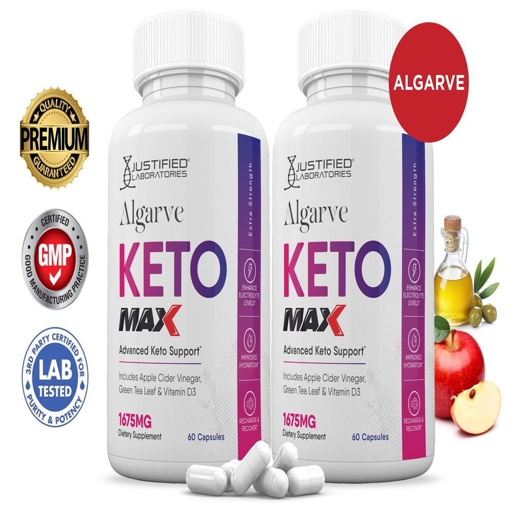 (2 Pack) Justified Laboratories Algarve Keto ACV MAX Pills 1675Mg Dietary Supplement 120 Capsules