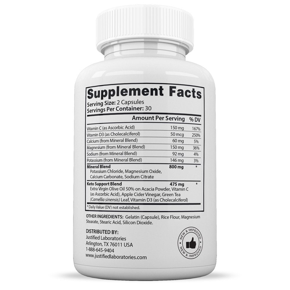 - ALGARVE KETO ACV PILLS: Justified Laboratories Keto Pills 1275 mg Proprietary Keto formula includes magnesium, calcium and sodium, which are key nutrients your body can be depleted of during ketosis.