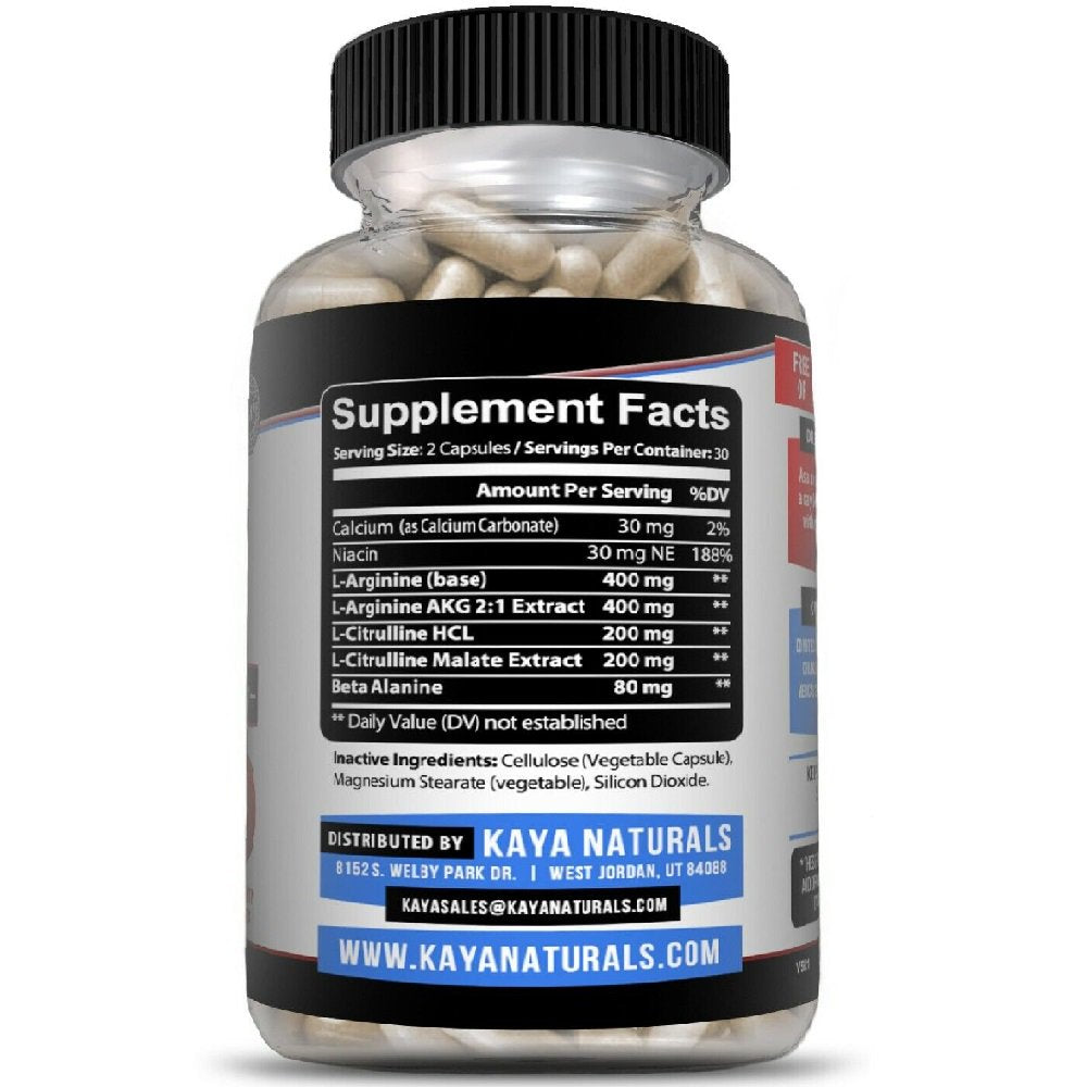 - Active Ingredients: L-Arginine AKG 2:1 Extract, L-Citrulline HCL, L-Citrulline Malate Extract, Niacin, Beta-Alanine, Calcium, L-Arginine
