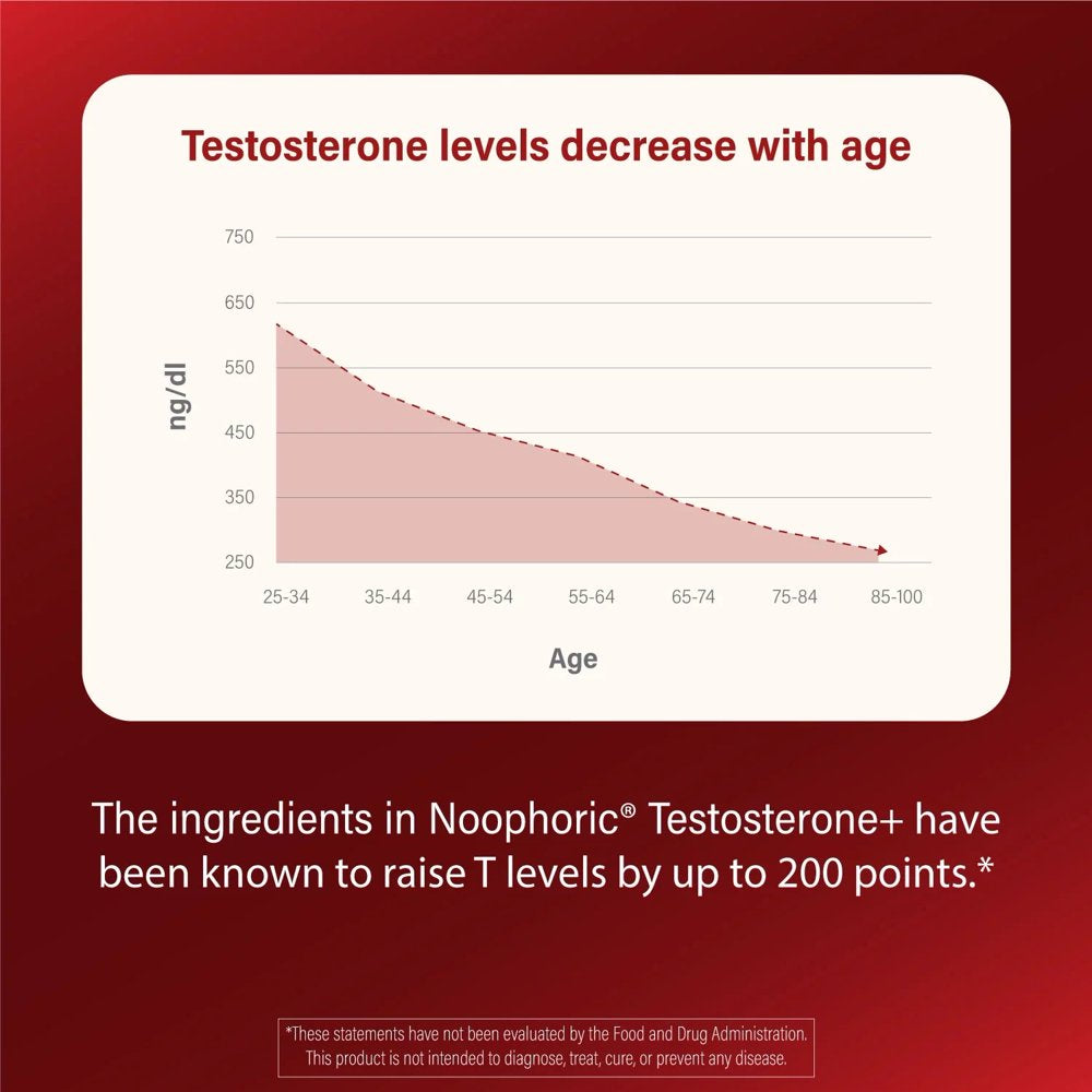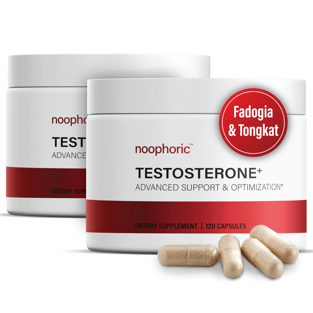 Noophoric Testosterone+ is a natural testosterone supplement for men. Formulated to enhance libido, improve energy levels, build muscle, and promote men's health. Key ingredients like Fadogia Agrestis, Tongkat Ali (LongJack), and Ashwagandha work to support healthy testosterone levels and improve overall well-being. Feel like a new man with all-day energy and increased cognitive function. Noophoric testosterone booster and other products are manufactured in the United States in a GMP-certified facility using ingredients sourced from around the world. Take 4 capsules each morning. *These statements have not been evaluated by the Food and Drug Administration. This product is not intended to diagnose, treat, cure or prevent any disease.