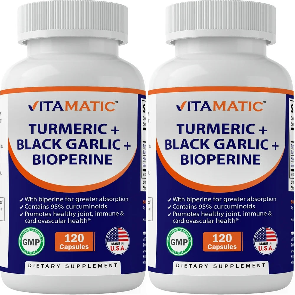 2 Pack Vitamatic Turmeric Curcumin (95% Curcuminoids), Black Garlic with Bioperine Black Pepper for Best Absorption, 910Mg Anti-Inflammatory Joint Relief, Turmeric Pills (Total 240 Capsules)