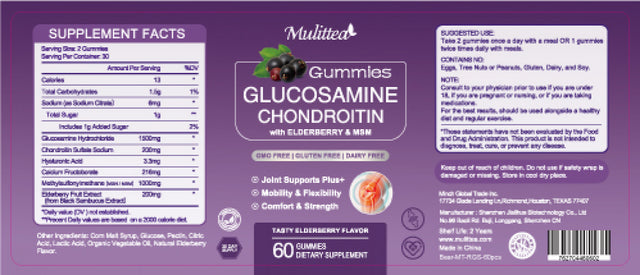 (2 Pack)Mulittea Glucosamine Chondroitin Gummies,With MSM & Elderberry,Joint Support Supplement Immune Support,120 Count is backordered and will ship as soon as it is back in stock.