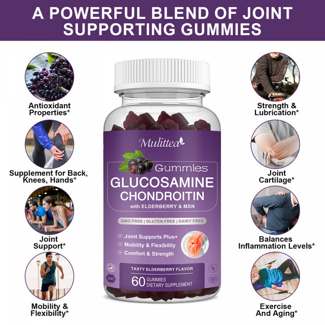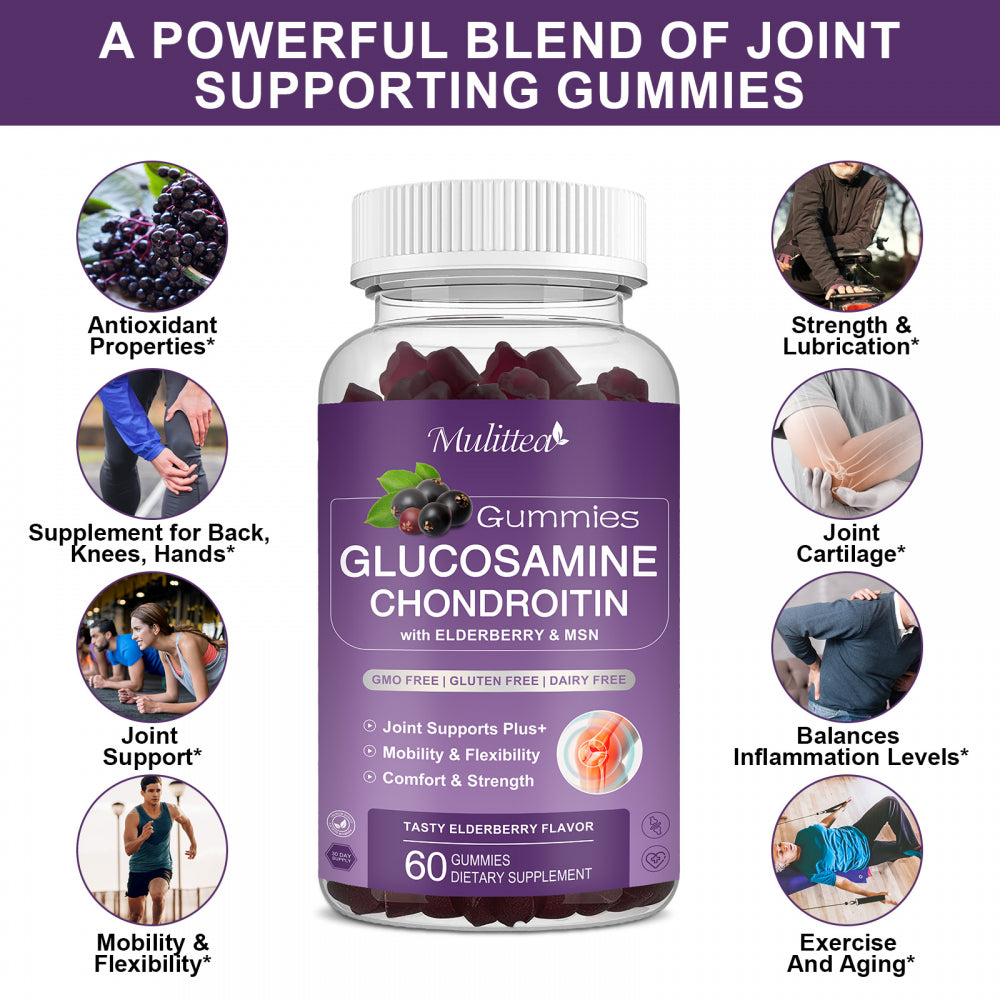 (2 Pack)Mulittea Glucosamine Chondroitin Gummies,With MSM & Elderberry,Joint Support Supplement Immune Support,120 Count