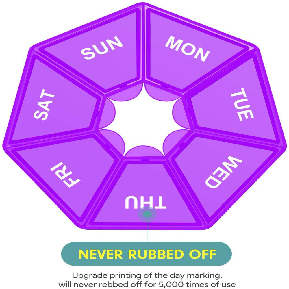 - 5.Enough quantity: you will get 2 pieces of 7-sided pill storage containers, enough for your daily use and you can also share them with your families and friends; Compact size and light weight ensure that you can easily carry them with your when going out for work or travelling, which can solve a lot of troubles for you
