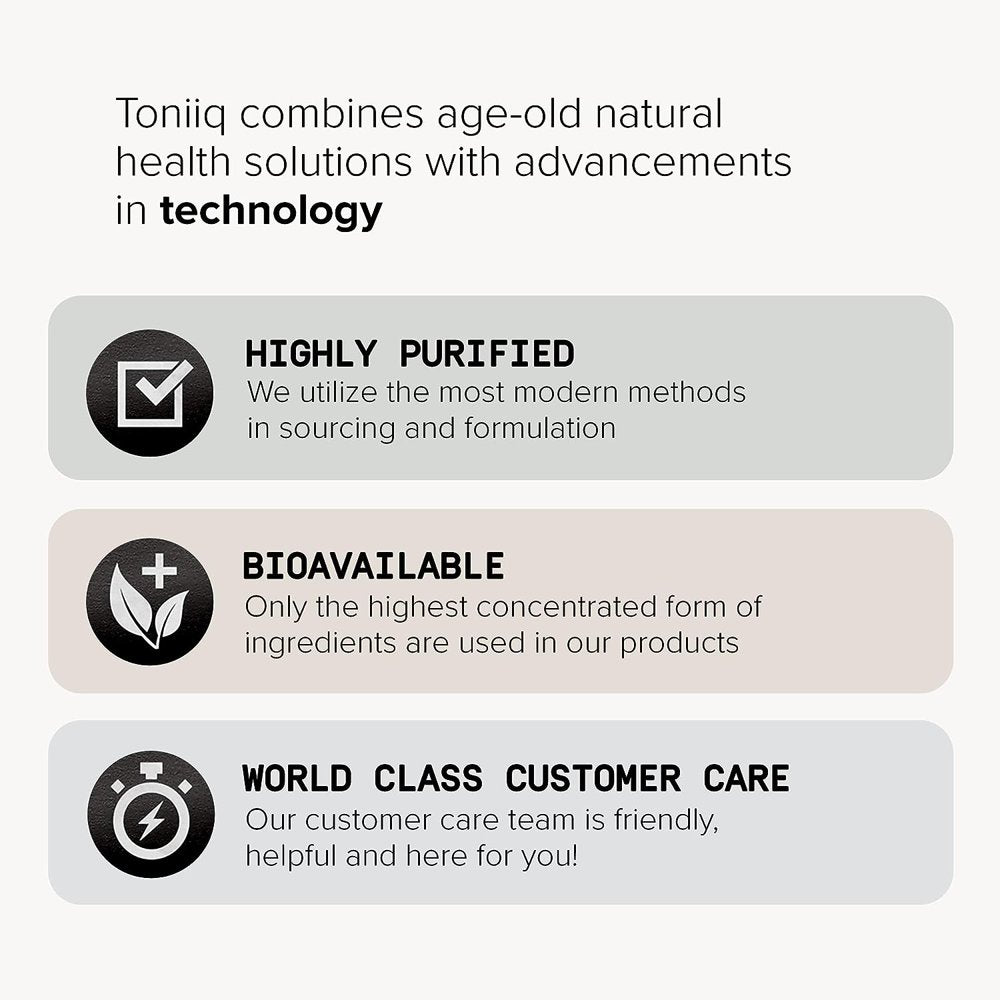 - Quality, first, and foremost: In order to meet the highest regulatory standards, Toniiq products are produced in a GMP-certified and NSF-approved state-of-the-art manufacturing facility in Miami, USA. Our products are vegan-friendly, have no additional preservatives, and are free of wheat and gluten*