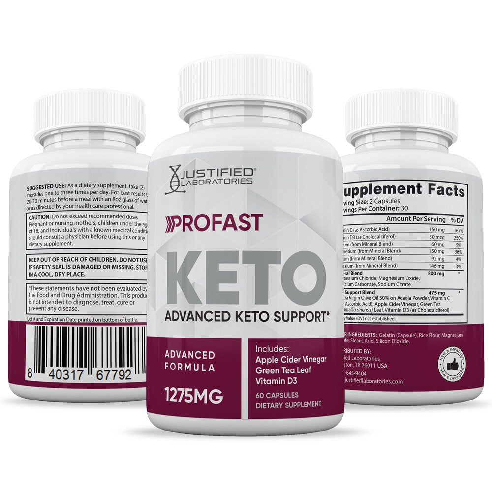 - PROFAST KETO ACV PILLS: Justified Laboratories Keto Pills 1275 mg Proprietary Keto formula includes magnesium, calcium and sodium, which are key nutrients your body can be depleted of during ketosis.