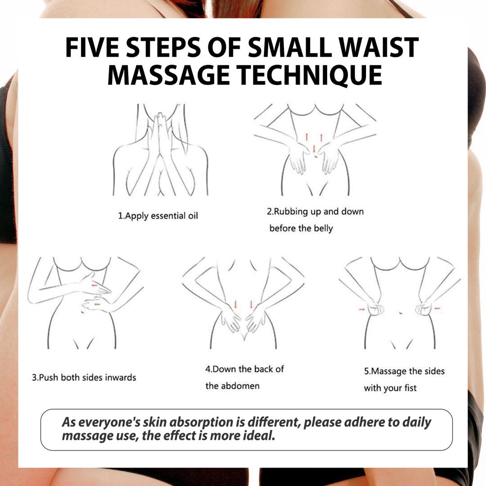 - 【How to Use 】Apply the product on the belly button and allow it to be absorbed to achieve a slimming effect. You can put it in a humidifier or water or use essential oils for body massage. You also can put a few drops on the skin for massage.