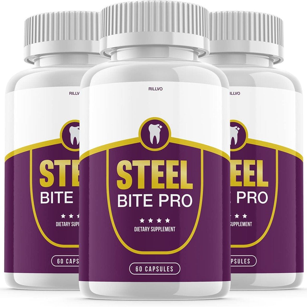 3 Pack Steel Bite Pro Teeth Supplement for Teeth and Gum Dental Repair Original 180 Capsules
