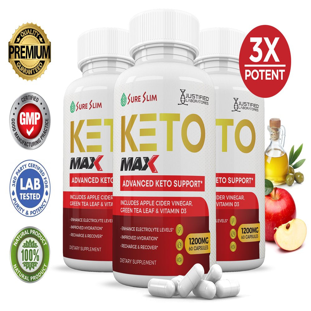 (3 Pack) Sure Slim ACV MAX Pills 1675Mg Stronger than Gummies Advanced Keto Support 180 Capsules