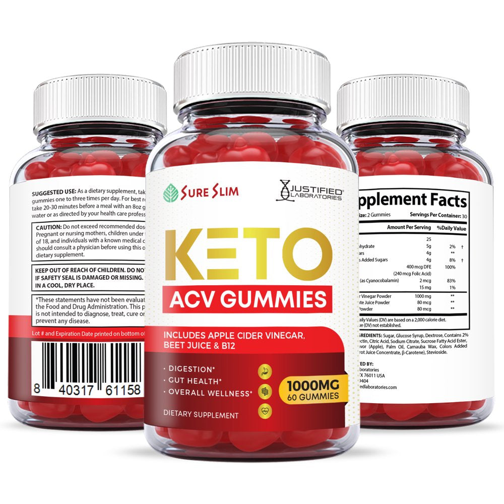 Sure Slim Keto ACV Gummies are packed with a powerful blend of ingredients, including 1000MG of apple cider vinegar, pomegranate juice, beet root, B12, and more. Say goodbye to the unpleasant taste of raw apple cider vinegar shots and hello to the delicious taste of our natural flavor gummies. What sets our gummies apart from the rest is that each serving of our gummies is packed with 1000MG of apple cider vinegar, while most other gummies on the market only contain 500MG per serving. Our proprietary blend also includes pomegranate and beet juice, which provides a range of additional benefits. Treat your body to a tasty and better tomorrow with our ACV Gummies!