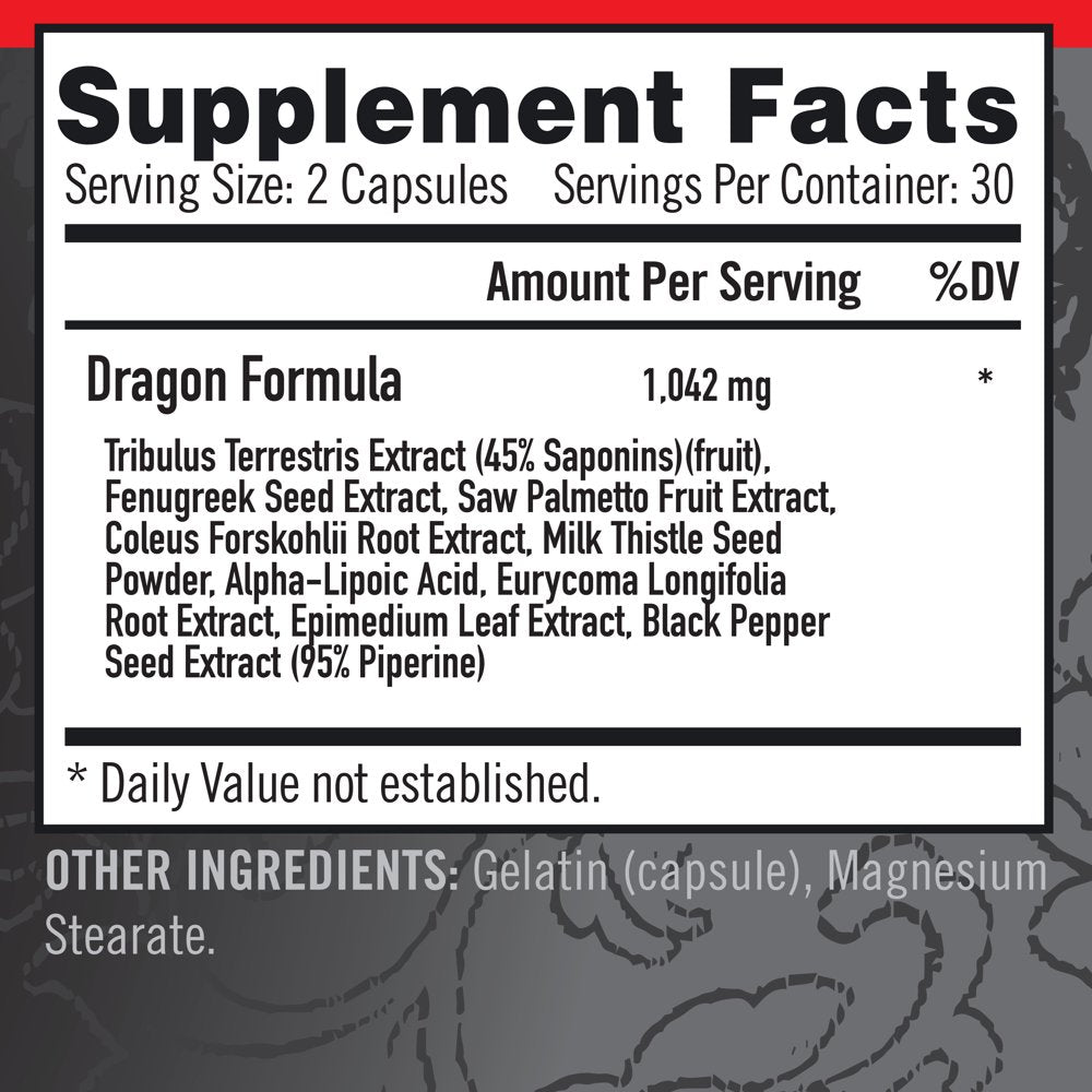 Recapture your youthful strength, endurance and stamina by replacing lost or low testosterone with Testosterone Booster for Men by Double Dragon Organics! By the time men hit 30 years old, their total natural testosterone levels are in decline. And while you may not notice it instantly, by the time you're 36 you could be suffering from low stamina, poor sexual performance, and even a loss in confidence. That's why you need Double Dragon Organics Testosterone Booster, a natural supplement that helps you regain your dwindling testosterone so you can take back your manhood. Safe, Powerful and Effective, Designed to help increase your circulation and blood flow, Testosterone Booster for Men acts as a natural anabolic enhancer that burns away stubborn belly fat, restores lost energy, and even helps build strength and lean muscle. More importantly, it can give you back the confidence you need for better physical and mental performance at work and at home. High-Quality Formula. Double Dragon Organics premium ingredients include Horny Goat Weed, Longifolia Root Extract, Saw Palmetto Fruit Extract, Bovine Orchic Substance, Wild Yam Root Extract, Sarsaparilla Root Extract, Nettle Root Extract, and Boron Amino Acid Chelate. Product Details: Safe, Natural Ingredients, Free of Binders and Fillers.