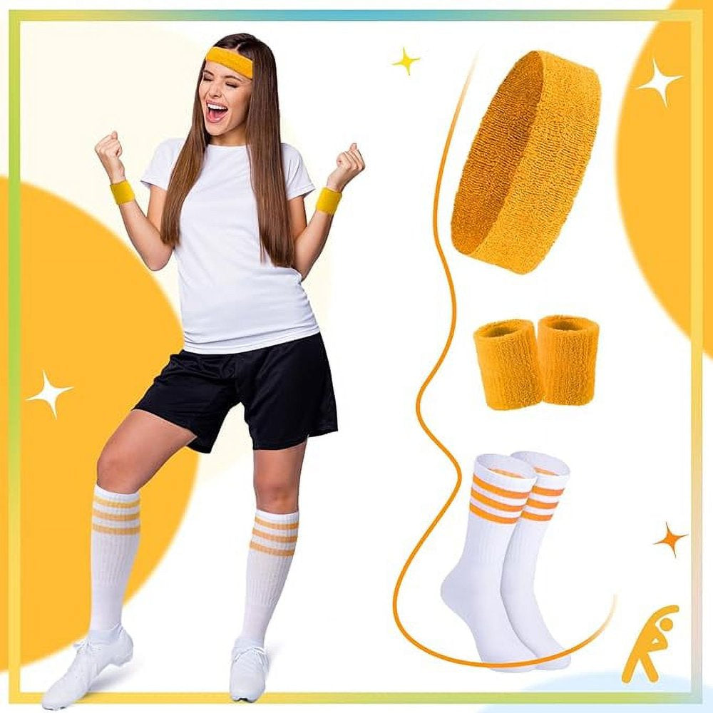 - WIDE APPLICATUON: These headband and wristband set is suitable wearing for intense activities such as climbing, running, jogging, cycling, gym, tennis, basketball, baseball, cycling, football and harlem globetrotters; Also the elastic sweatband socks set are great costume accessories for 80s theme parties, 80's outfits for men, Halloween, dress up, Independence Day events, athletic themed party, Christmas, cosplay costume, team activities and New Year!