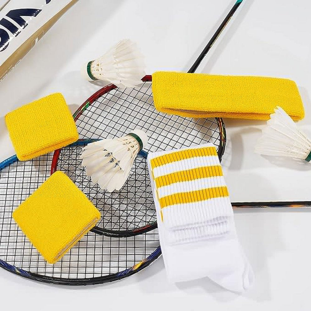 Package Includes:1 piece sport headband x 2 pieces wristbands sweatband, 1 pair of high tube socks