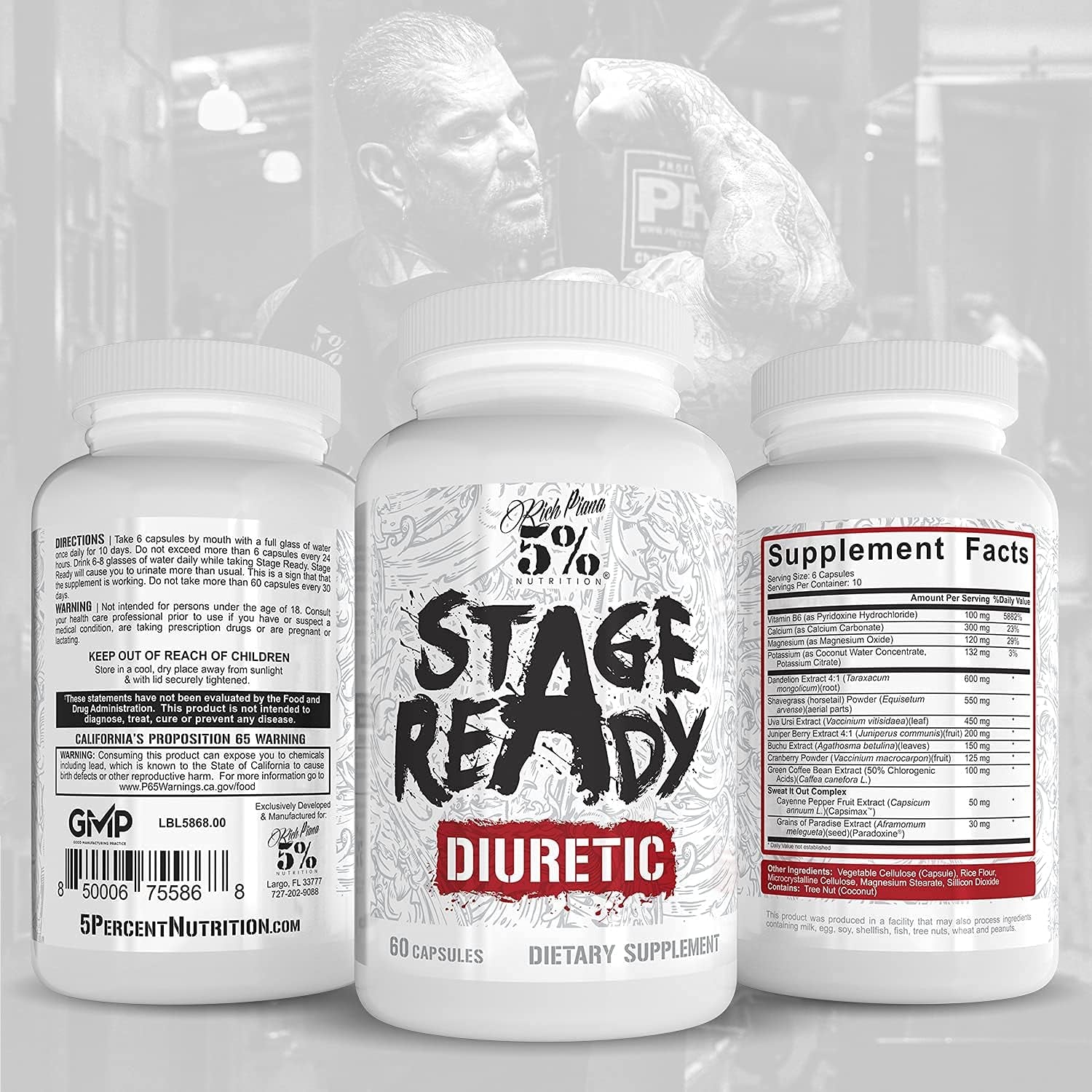 5% Nutrition Stage Ready Diuretic | Extra Strength Competition Diuretic | Fast Acting Weight Cut, Water Retention & Bloat Relief | Natural Formula W/Dandelion Root, Shavegrass, Uva Ursi (60 Pills) - Stage Ready is backordered and will ship as soon as it is back in stock.