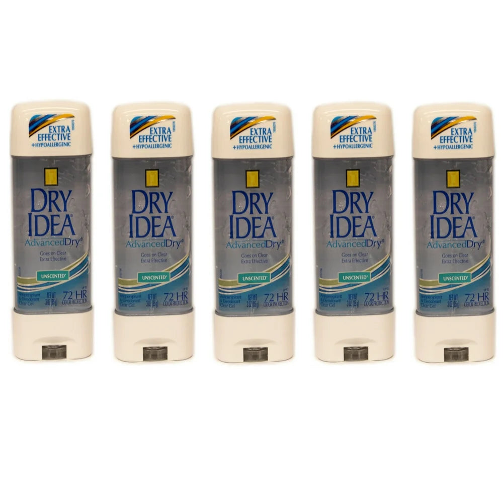 5 Pack Dry Idea Advanced Dry Unscented Antiperspirant & Deodorant Gel 3 Oz Each