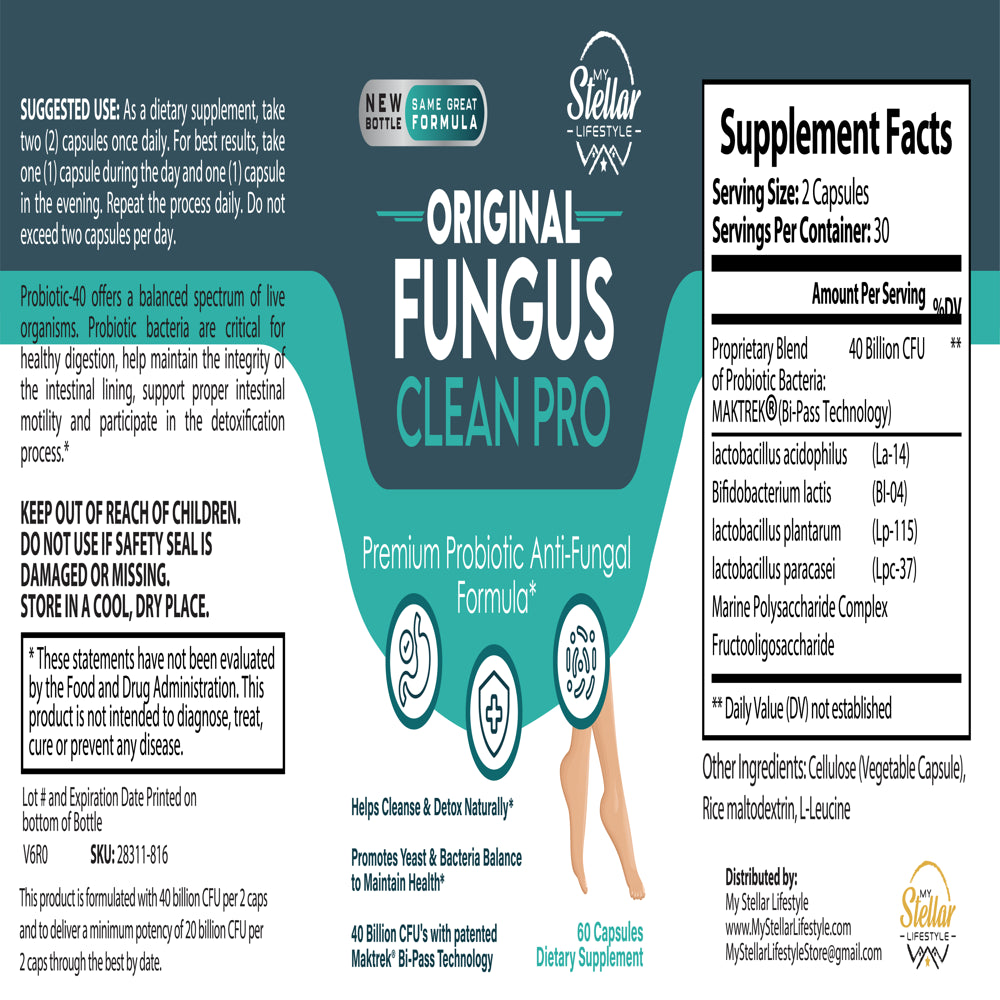 5 Pack Fungus Clean Pro Prevent and Cure Fungus! Probiotic Fungus Inhibitor-60 Capsules x5 Fungus Clean Pro - Probiotic Fungus Inhibitor - Fight off fungus from the inside out with this fungus defense probiotic. Protect your body from fungus Fungus Clean Pro Probiotic Fungus Inhibitor works from