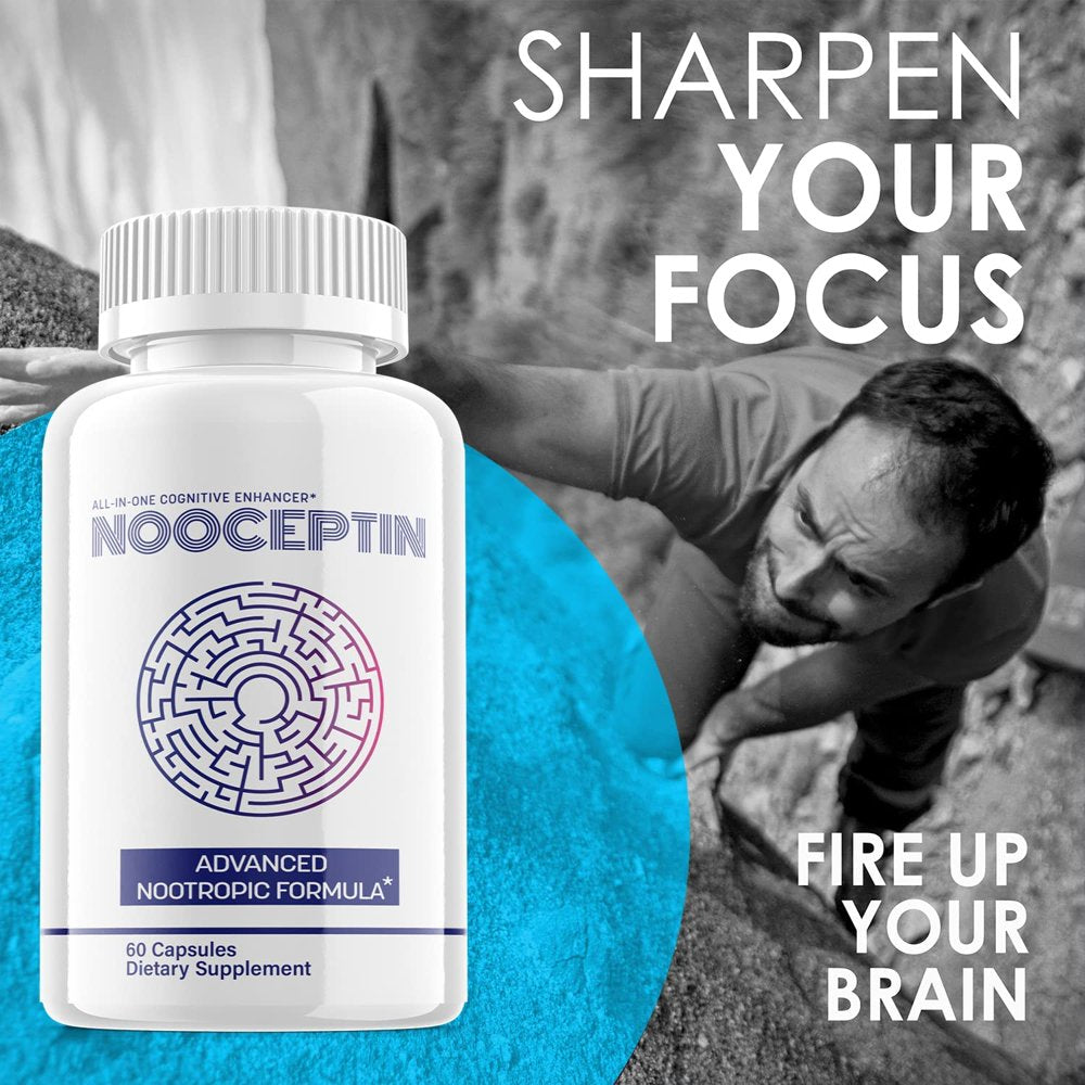 Boost your brainpower and performance with Nooceptin Dietary Supplement (Sell Package Quantity 5 Pack). There are various factors that could cause our minds to be less clear and sharp. These cognitive enhancement capsules work in synergy to help improve your creativity, memory, attention, focus, concentration, and mood no matter your age. With a brain booster it will give your brain a jumpstart and improve memory and clarity. Feel the boost of concentration and focus that your brain needs. Our brain supplement may help enhance cognitive function through key nutrient supplementation. Each capsule contains highly effective ingredients that may help improve memory, focus, mental clarity and alertness. Brain booster supplement for focus, memory, clarity, energy with more nutrients than the average brain support supplement for mental acuity. Give our brain supplement for focus, energy, memory & clarity a try and see how you can boost your mental Sharpness Clarity Focus and Overall performance the natural way. Our brain support supplement so that the included ingredients build upon each other to most effectively support clarity, memory, energy and focus all in one capsule.