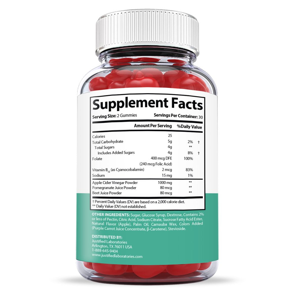 ADDED INGREDIENTS: Our proprietary blend of apple cider vinegar gummies contain beet root, vitamin b12 and folate.