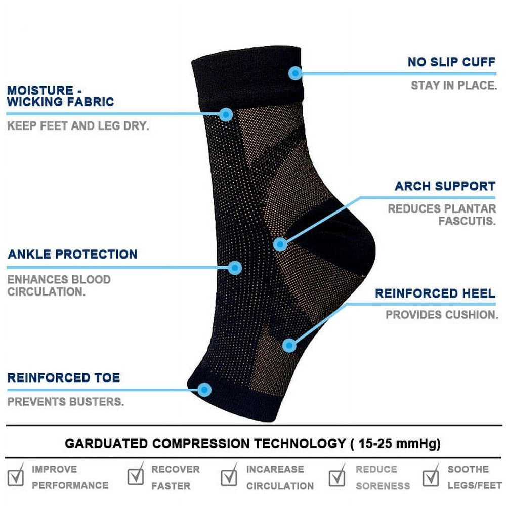Quickly Relieve Foot Pain -- These foot compression sleeve help relieve foot pain from plantar fasciitis, heel spurs, foot neuropathy, swollen ankles, and more.