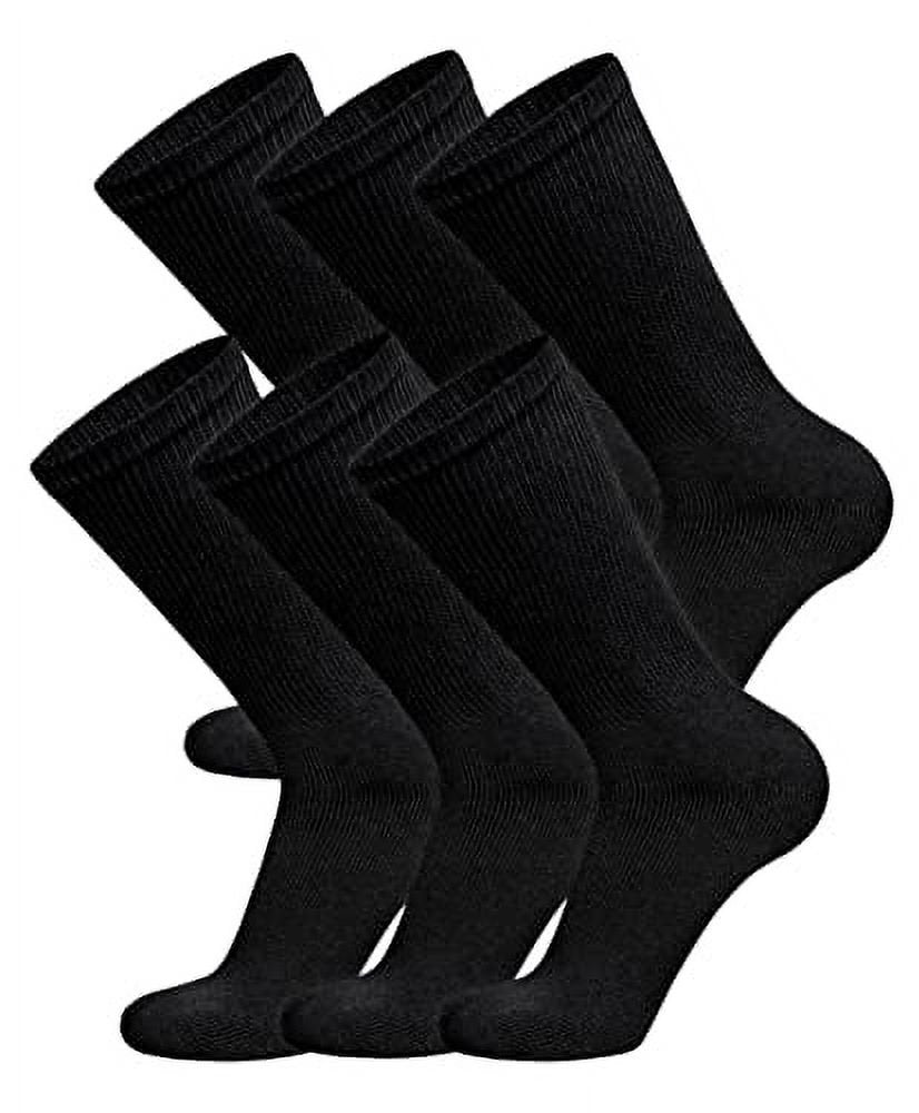 6 Pairs of Cotton Diabetic Non-Binding Neuropathy Crew Socks (Black, Fits Mens Shoe Size 9-12/Womens Shoe Size 10-13)