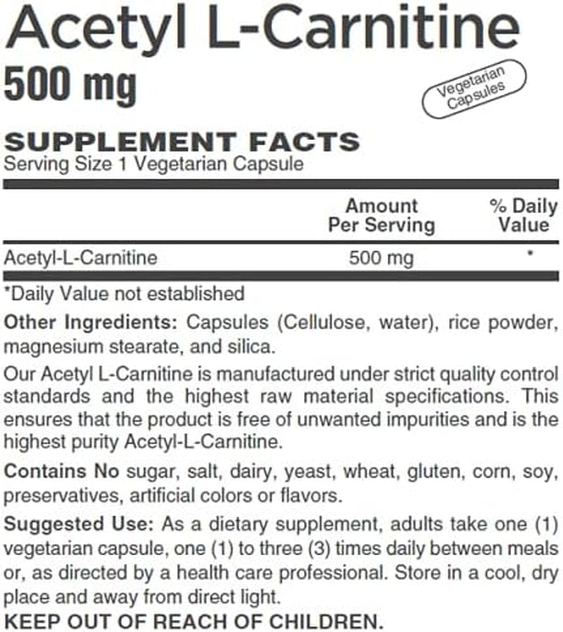 Acetyl L-Carnitine- 500 Mg Vegetarian Capsules ( Sourced from Sigma-Tau Health Sciences ) (90 Veg Caps) - 90 Veg Caps is backordered and will ship as soon as it is back in stock.