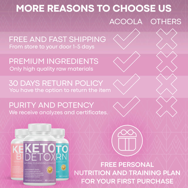 Acoola Keto Detox Pills Advanced Cleansing Extract – Natural Acai Colon Cleanser Formula Using Ketosis & Ketogenic Diet, Flush Toxins & Excess Waste, for Men Women, 60 Capsules is backordered and will ship as soon as it is back in stock.