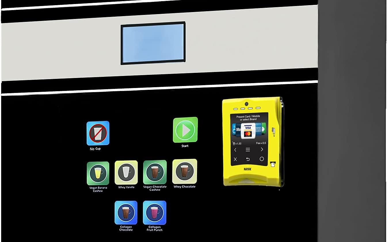 Active Protein Shake Vending is an advanced super-automatic drink machine that perfects fresh cold shakes and beverages. Active Protein whips any soluble drink into a frothy drink chilled to 38° F. Drinks are made within one minute of being ordered with the simulated touch of a button. Touchless Selection provides the safest, hygienic approach for orders by simply hovering 1/2 inch away from the screen. Active Protein is truly a barista that never sleeps as it can operate 24 hours a day. The vending model is designed to provide shakes quickly and is suited for any location serving up to 500 cups a day such as a gym, apartment, hotel, or other high-traffic locations. Never rely on bottled, over-processed, and preserved protein shakes again. Active Protein is a sure winner in any establishment and people will appreciate the convenience of having an Active Protein Shake machine nearby to visit daily. Active Protein Shake Vending incorporates the most sophisticated drink technology known worldwide to make fresh, out-of-this-world delicious drinks that keep people coming back for more.
