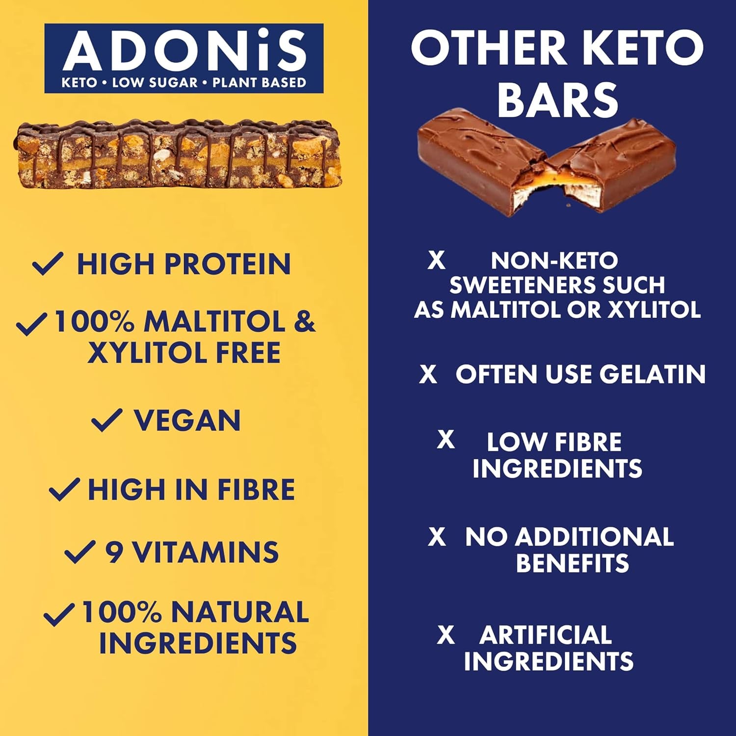 Adonis Peanut Butter & Chocolate High Protein Keto Bars (16 X 45G Bars) | Vegan & Keto-Friendly | 100% Natural Keto Snacks | Sugar Free, Palm Oil Free, Dairy Free | Low Sugar, Low Calorie & Low Carb