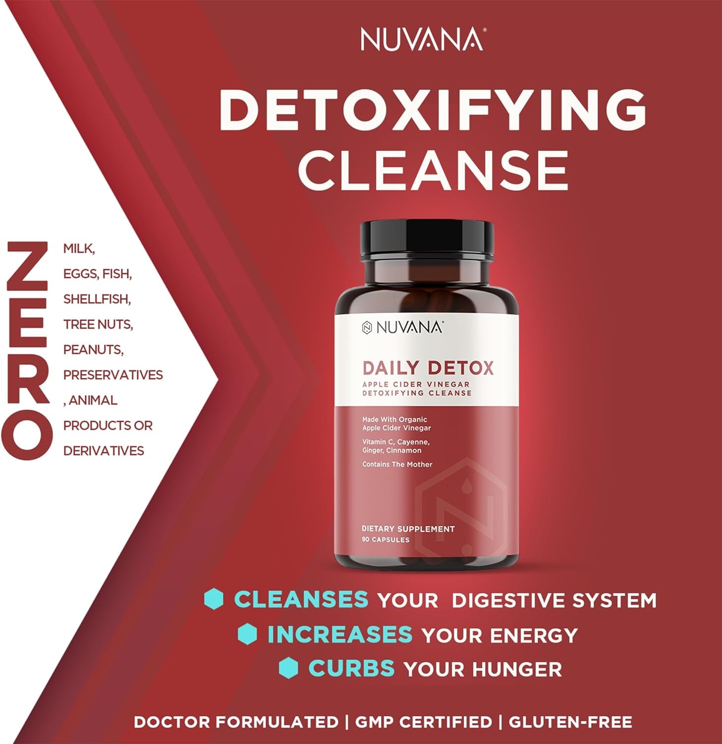 Advanced Detox Apple Cider Vinegar - Organic W/ the Mother - Natural Healthy Weight, Digestion, Energy, and Detox Support - ACV by Nuvana - 90 Capsules