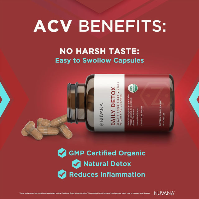 Advanced Detox Apple Cider Vinegar - Organic W/ the Mother - Natural Healthy Weight, Digestion, Energy, and Detox Support - ACV by Nuvana - 90 Capsules is backordered and will ship as soon as it is back in stock.
