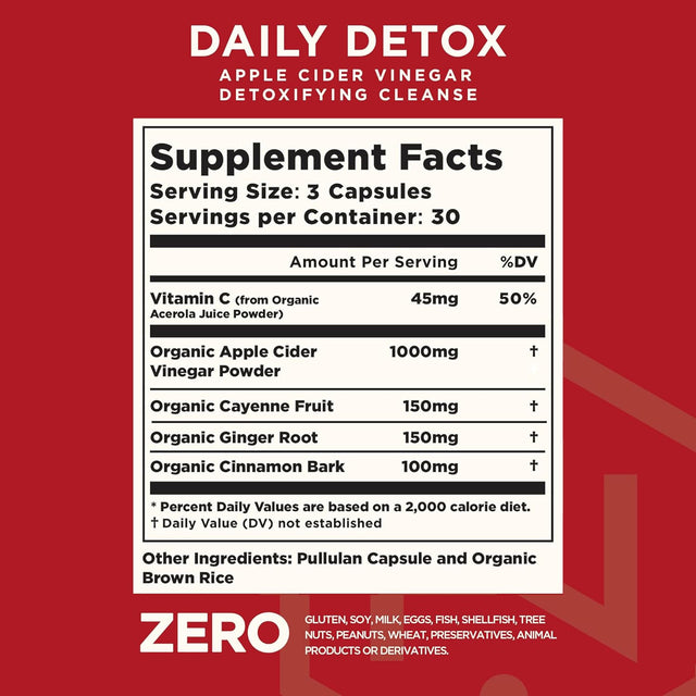 - A DYNAMIC DETOX - Much more than just an Apple Cider Vinegar diet, our USDA certified organic Daily Detox combines Vitamin C from Acerola Fruit with Ginger, Cayenne and Cinnamon for a decidedly more comprehensive cleanse. Take once or twice daily for rapid results. Now featuring “The Mother.”